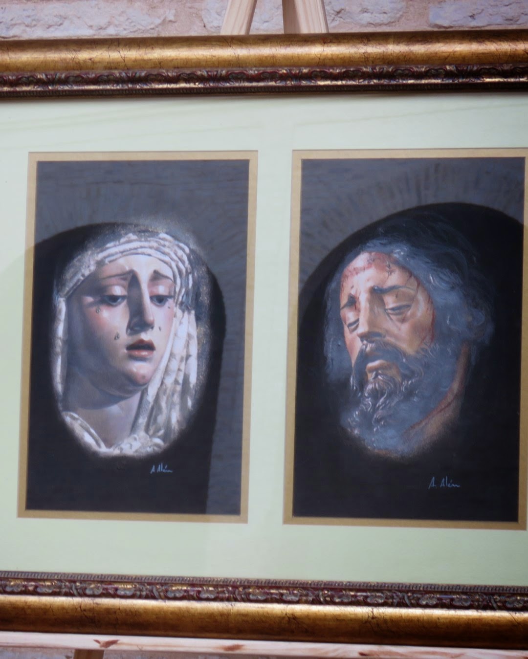 En el Palacio de los Marqueses de La Algaba se encuentra abierta hasta finales de febrero una exposición conjunta de dos artistas sevillanos bajo el título de “Dos Miradas” , ya que se presentan pinturas y esculturas. Las obras pictóricas corresponden a Ángel Alén Martínez y las esculturas son de Jaime Babío Núñez. Les mostramos una selección de las obras expuestas todas ellas de temática cofrade.