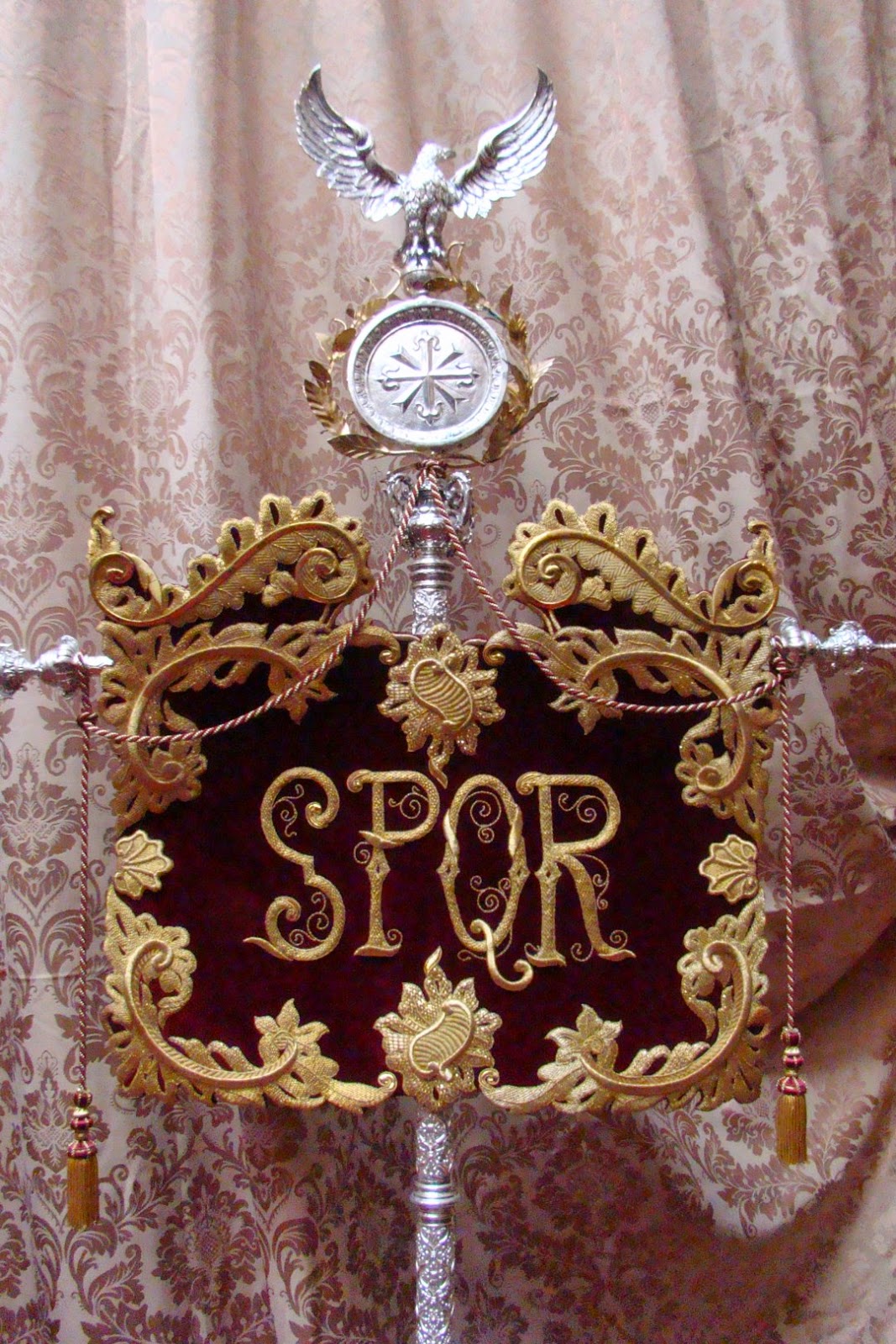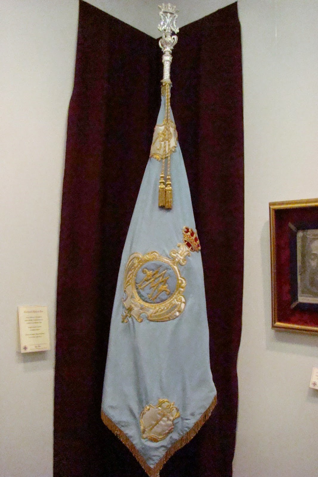 En esta tercera entrega les mostramos las diferentes insignias que componen el cortejo procesional de la Hermandad, desde la cruz de guía, senatus, estandarte y banderín sacramentales, guiones de la caridad y del cincuenta aniversario, banderín de la juventud, banderas pontificia, de la realeza de maría, de la cruz de Jerusalén, el Simpecado y el estandarte corporativo.