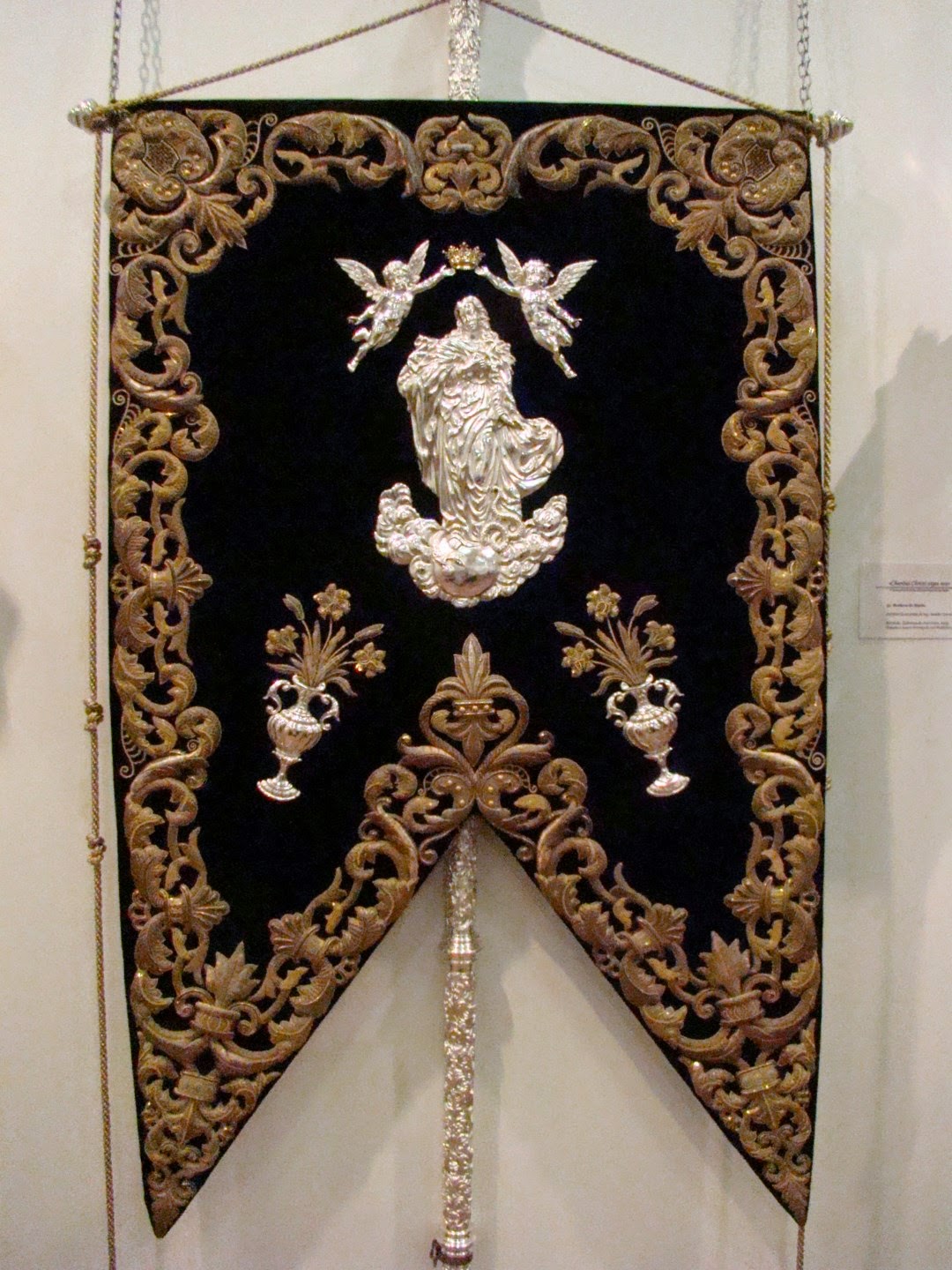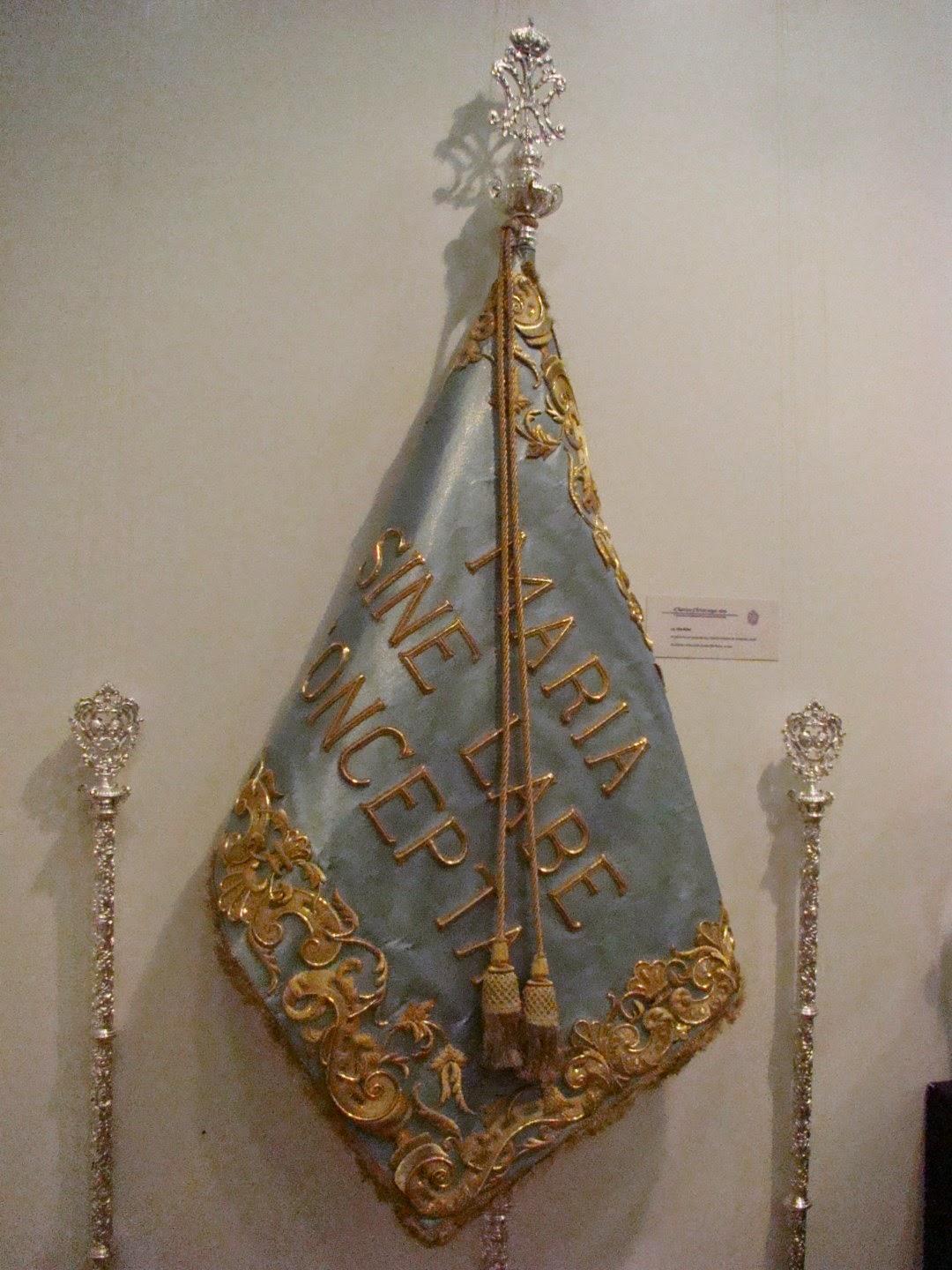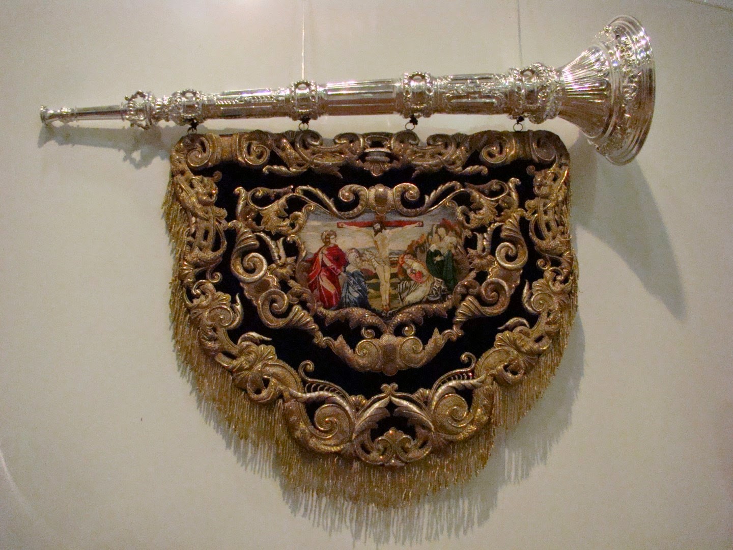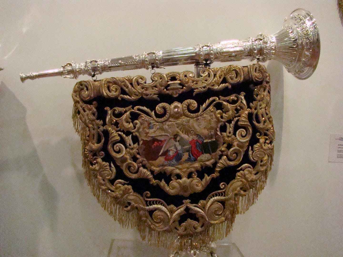 Con el nombre de “Charitas Christi urge nos” la Hermandad de Santa Marta organizo una exposición donde nos mostraba sus enseres más destacados desde su origen fundacional, a esto se le une el patrimonio de la Hermandad Sacramental de la Parroquia de San Andrés que se fusionó con la penitencial. La muestra se pudo contemplar en la sede del Círculo Mercantil de Sevilla el pasado mes de mayo. En este apartado les mostramos las insignias más destacadas, las bocinas realizadas por Emilio García Armenta en 1953 con paños bordados en taller de sobrinos de José Caro. El guión de Juventud realizado por el orfebre Jesús Domínguez Vázquez en 1972. El Sinelabe realizado en 1954 por Emilio García Armenta con bordados de sobrinos de José Caro.