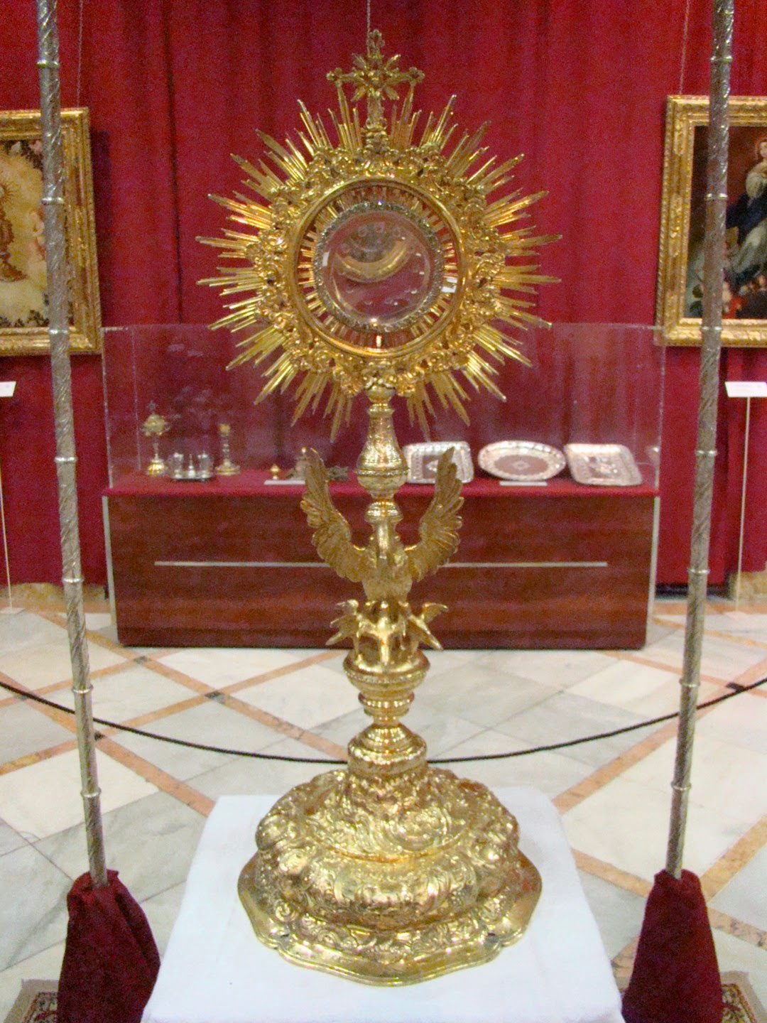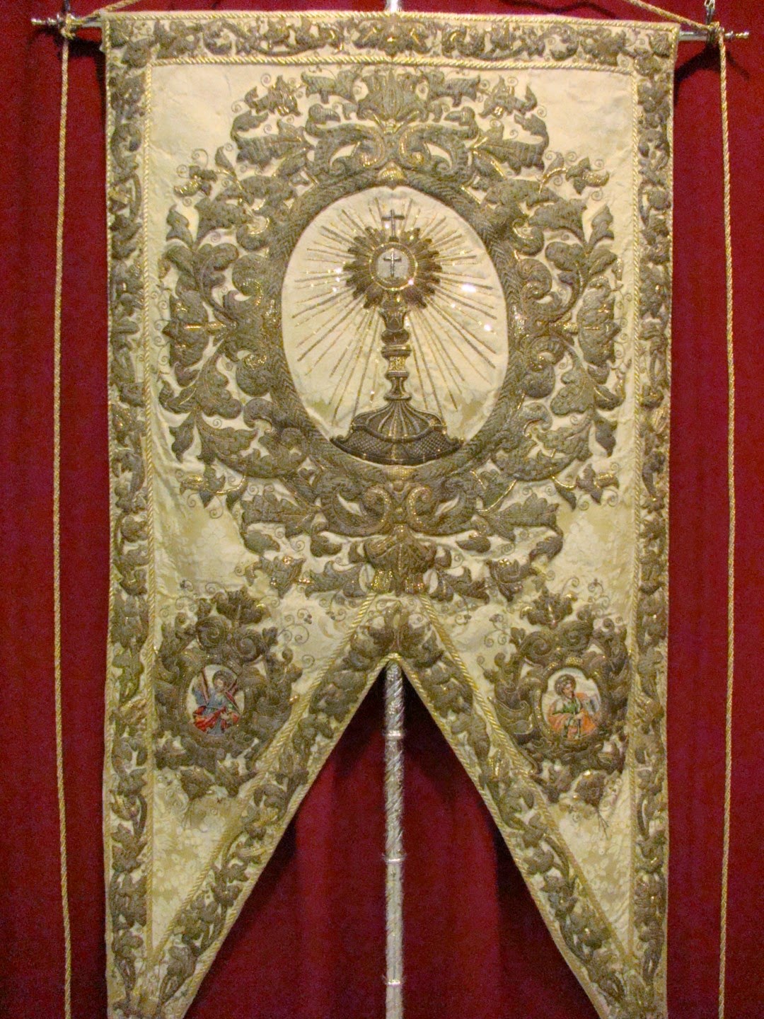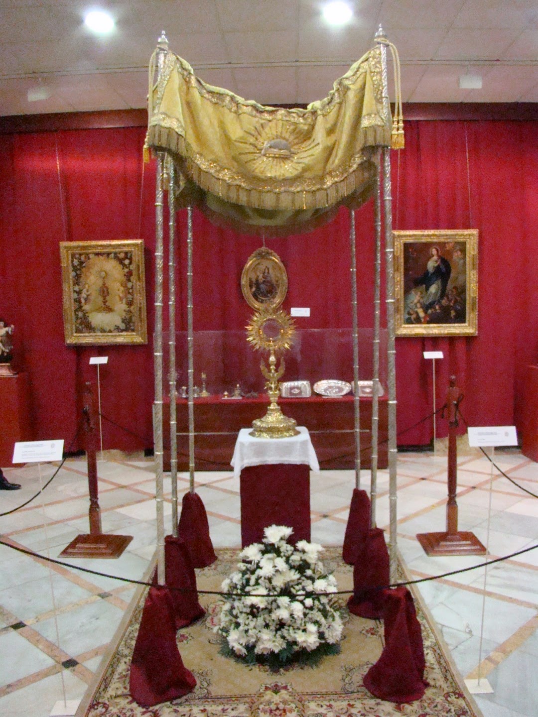 Con el nombre de “Charitas Christi urge nos” la Hermandad de Santa Marta organizo una exposición donde nos mostraba sus enseres más destacados desde su origen fundacional, a esto se le une el patrimonio de la Hermandad Sacramental de la Parroquia de San Andrés que se fusionó con la penitencial. La muestra se pudo contemplar en la sede del Círculo Mercantil de Sevilla el pasado mes de mayo. En este apartado les mostramos los enseres correspondientes a la Hermandad Sacramental tales como el estandarte Sacramental con bordados antiguos y que se realizó en 1990 por Joaquín Ojeda Osuna. El Guión Sacramental obra de Mariano Martín Santonja en 2014. El palio de escuela francés del siglo XIX y la Custodia en plata dorada del siglo XVIII.