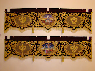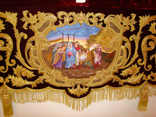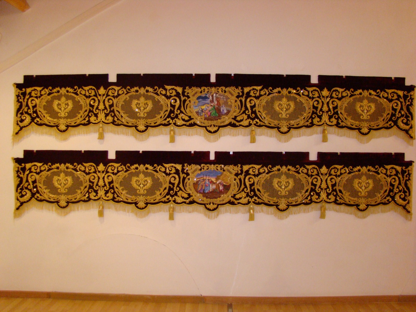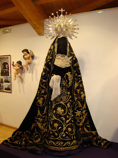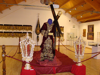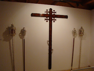 Se muestran diversos enseres de la Hermandad, destacando la túnica de los “ cristales” realizada en 1856 por Josefa Cano y Mª Dolores Moreno, la túnica morada realizada en 1902 que se restauró en 1993, los respiraderos del paso de cristo que han sido enriquecidos con bordados en sedas de colores por Grande de León y el manto y saya negras de la Virgen de 1902. La saya ha sido restaurada en 2011 por Grande de León.