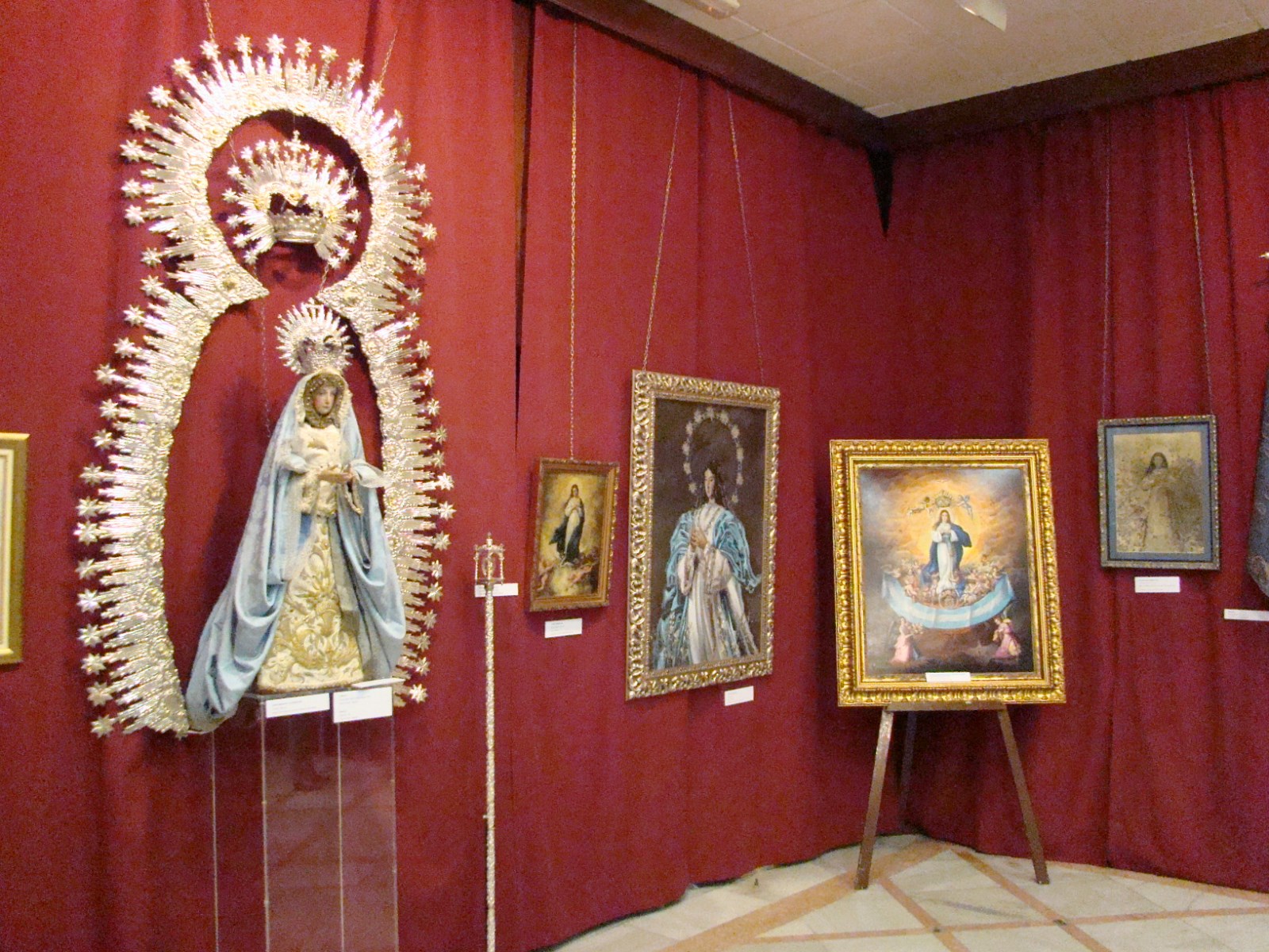 Santa maría de la Concepción, obra anónima del siglo XV. Corona de Jose Guzman del s.XVIII y Ráfaga de palomino de 1865.