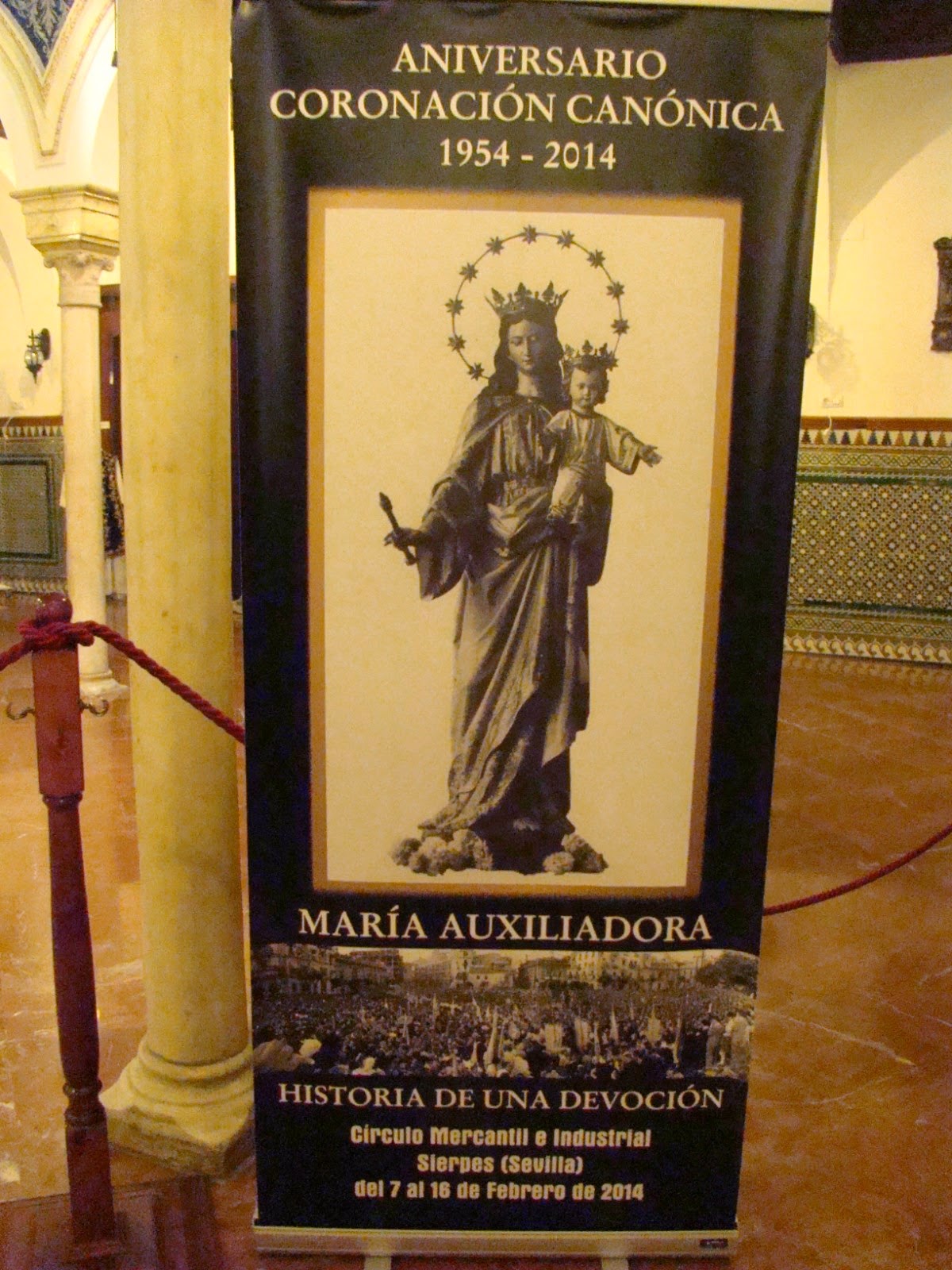 Con motivo de celebrarse el sesenta aniversario de la coronación canónica de la imagen de María Auxiliadora del Colegio Salesiano de la Santísima Trinidad se ha organizado una exposición en recuerdo de dicha efemérides. La misma se encuentra en la sede del Círculo Mercantil de Sevilla y podrá visitarse hasta el próximo 16 de febrero. En la misma se muestran diferentes enseres de la hermandad, así como parte del ajuar de la Virgen además de fotos y documentos relacionados con la coronación realizada en mayo de 1954 por el Cardenal Segura.