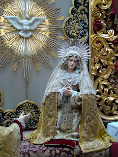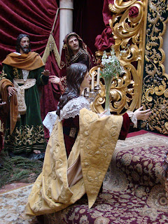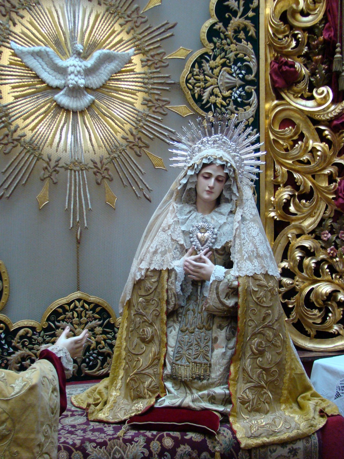 La imagen de la Virgen, obra no bendecida y realizada expresamente para este montaje, es de Fernando Aguado, autor también de otras tres imágenes pertenecientes a la Hermandad de las Viñas de Jerez de la Frontera (Cádiz). Así como de la imagen de Santa María Magdalena procedente de la Hermandad de la Piedad de Cabra(Córdoba).