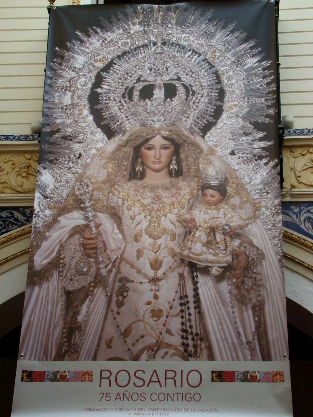 Con el título de “Rosario, 75 años contigo” se mostro en el Círculo Mercantil de Sevilla una exposición sobre la Hermandad y Cofradía del Santo Rosario de la localidad sevillana de Benacazón. El motivo es conmemorar los 75 años de la hechura de la actual Virgen del Rosario, ya que la primitiva desapareció en un incendio fortuito en el año 1939, la nueva talla es obra de Antonio Castillo Lastrucci.