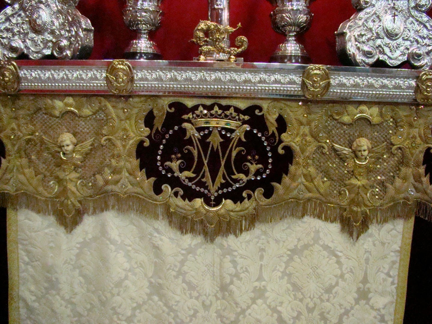 En la exposición se mostraron los diversos enseres que posee la hermandad para la salida procesional y el ajuar de la Virgen. En esta segunda entrega se muestran las piezas de orfebrería que usa la imagen, como la corona de salida actual obra de Ramón León Losquiño en 2010, o la corna antigua del siglo XVII ampliada con imperiales y diadema en el s. XIX. También se muestra la delantera del paso procesional, con candelabros y jarras obra de orfebrería Itálica.