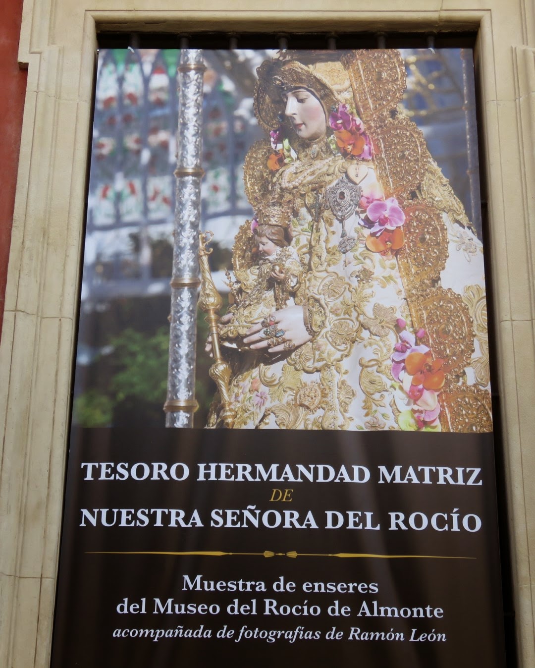 En la sede de la Fundación Cajasol en la Plaza de San Francisco de Sevilla se ha inaugurado una exposición sobre el “Tesoro de la Hermandad Matriz de Nª. Sª. del Rocío”. Para ello desde la aldea almonteña se han traído una serie de objetos y enseres relacionados con la Virgen del Rocío en estos días próximos a la Romería de 2015.La muestra estará abierta hasta el día 15 de mayo. Entre las piezas más destacados se hallan los bocetos de los evangelistas que se encuentran en las pechinas de la ermita, obra de Manuel Carmona, algunos fragmentos del antiguo retablo de la ermita, un rostrillo de la Virgen obra de Manuel Solano Rodríguez y los originales de carteles que hacen referencia a la Romería y a otras efemérides., así como un guardapolvo y un sombrero de la virgen. La exposición se completa con una galería fotográfica de diversos pasajes rocieros realizada por Ramón León.