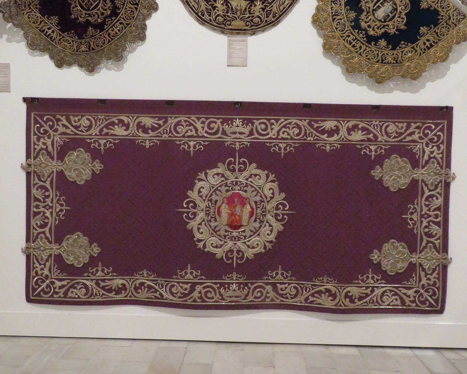 Paños de bocina de la Hermandad de los Estudiantes, diseño de Herminia Álvarez Udell en 1928, bordadas por Concepción Fernández del Toro en 1929.