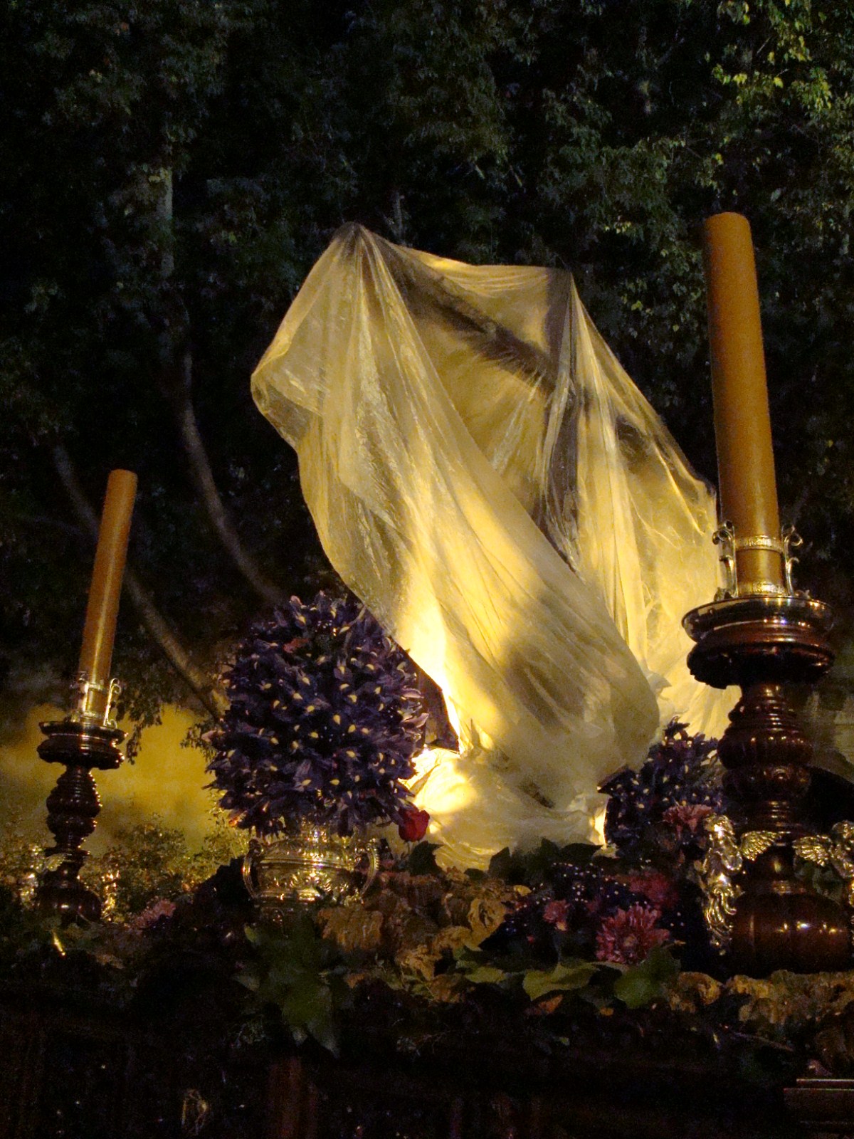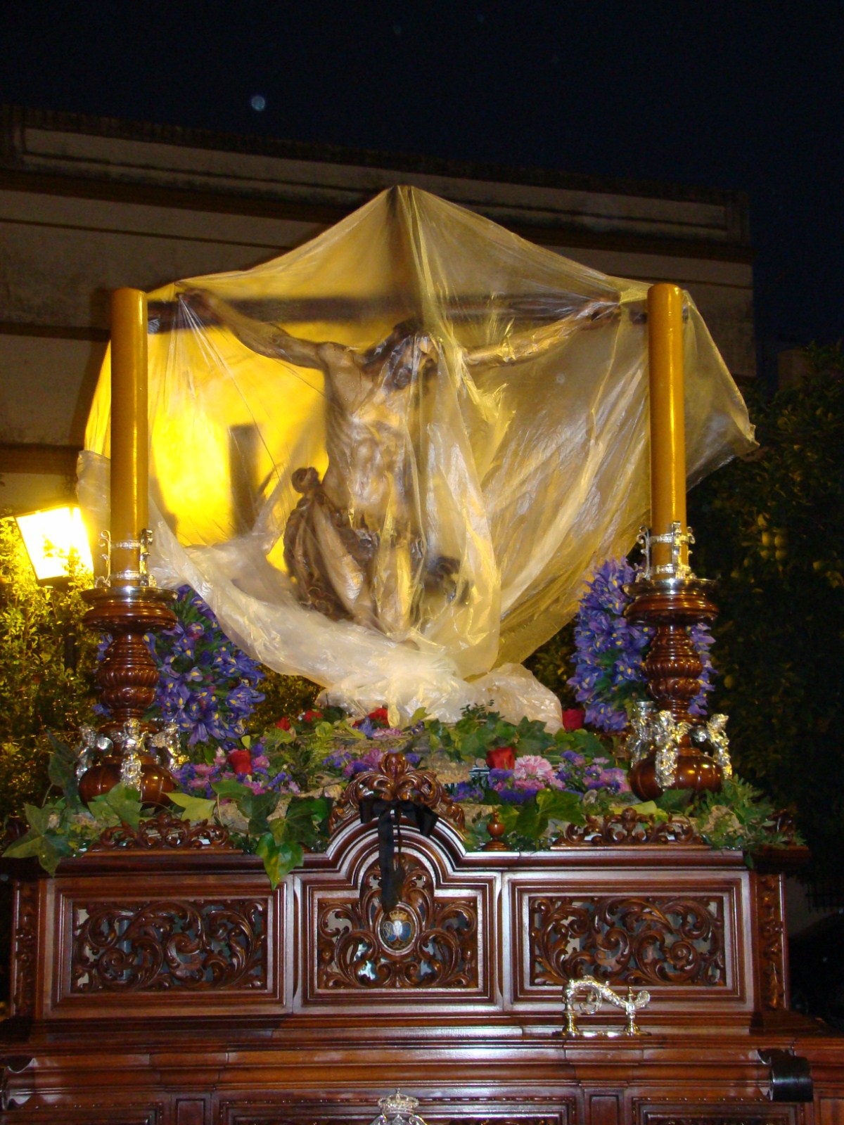 » Que durante el trancurso de una procesión aparezca la tan temida lluvia no es una novedad, muchas veces ha ocurrido desgraciadamente y todos tenemos en el recuerdo las imágenes de la pasada semana santa . Lo que no es frecuente, es ver la imagen de un crucificado cubierto por los plásticos, al menos en Sevilla es una cosa inusual y el pasado sábado 10 de noviembre es lo que le ocurrió al Cristo del Perdón al verse sorprendido por un chaparrón que duró más de lo deseado.»