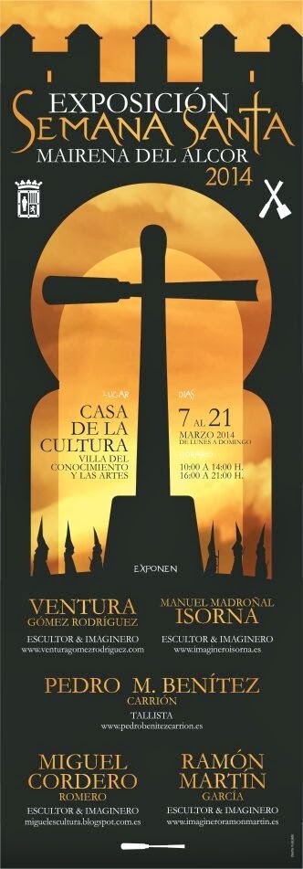 Del 7 al 21 de Marzo de 2.014, se celebrara la primera exposición de Semana Santa en Mairena del Alcor. En la misma participaran los Escultores Ventura Gómez Rodríguez, Manuel Madroñal Isorna, Miguel Cordero Romero, Ramón Martín García y el Tallista Pedro M. Benítez Carrión.