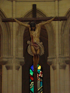 Desde que abrió definitivamente al culto la Catedral madrileña de la Almudena preside el presbiterio la imagen de un crucificado que a simple vista nos recuerda a Sevilla. Se trata del Crucificado de la Buena Muerte realizado por el escultor Juan de Mesa en 1621 para la iglesia del Colegio Imperial de Madrid, en ese lugar estuvo hasta 1936 donde un incendio destruyó el edificio y milagrosamente se pudo salvar la imagen que sufrió daños en sus piernas, quemadas desde las rodillas hasta los pies y posteriormente reconstruidas. El crucificado después ha estado en la Real Colegiata de San Isidro junto a la capilla donde se sitúa Nª Padre Jesús del Gran Poder.