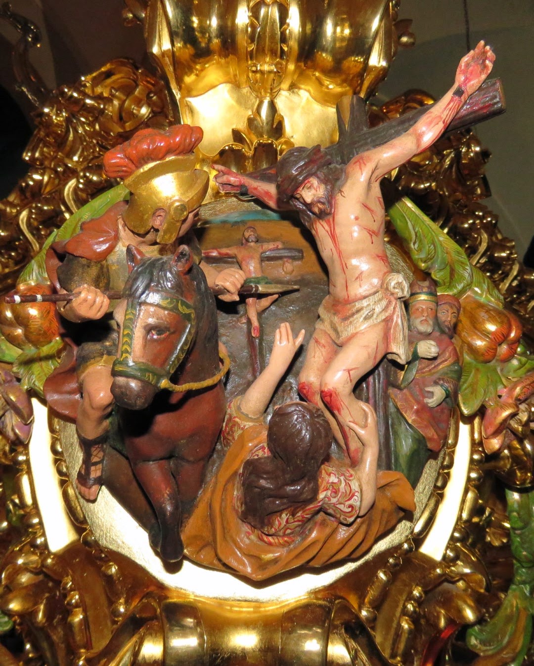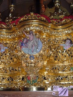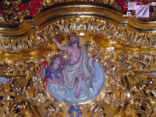 Les mostramos a continuación una cartela de similar tamaño a la de nuestro paso que representa precisamente la Sagrada Lanzada, se encuentra en el nuevo paso del Cristo de las Cinco Llagas de la Hermandad de la Trinidad, ha sido realizada por el escultor Mariano Sánchez del Pino en el año 2013.