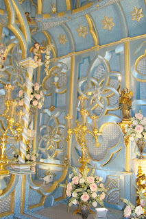 » La localidad de Bonares (Huelva) es un pueblo donde la fiesta de las Cruces de Mayo es todo un acontecimiento. El tercer domingo de mayo , siempre que no coincida con Pentecostés se celebra el Día de las Cruces, las doce existentes en la localidad procesionan por sus calles. Cada año una de las doce es designada «Cruz del Romero», lo que conlleva que la decoración interior de su capilla, donde se encuentra durante todo el año tiene que que ser nueva. Durante ocho meses las vecinas de la calle y aledaños se han esmerado en realizar una nueva ornamentación para su cruz, donde todo se estrena desde la decoración realizada con telas de raso, hasta la cruz misma. Les mostramos la Cruz del Romero 2012 de esta localidad, la conocida por la Cruz del Pilar, su color el azul lo único que no cambia, todo los demás es de estreno, decoración que perdurará de esa manera doce años hasta que nuevamente le toque, pues la designación va variando anualmente según orden preestablecido entre todas las cruces existentes en Bonares.»