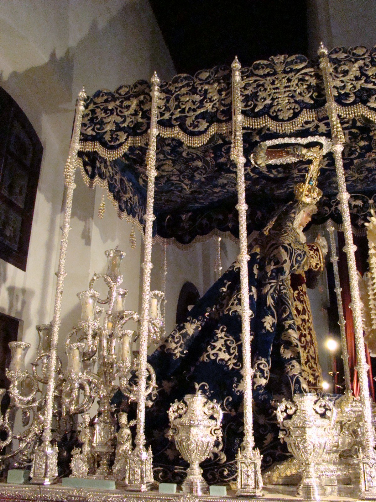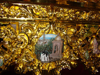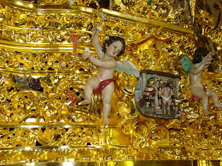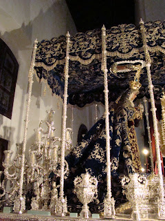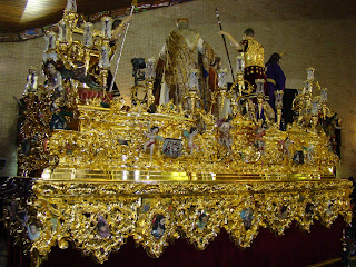 En principio puede resultar extraño el título de este artículo pero cuando vean a lo que nos referimos lo entenderán perfectamente. Les mostramos algunos detalles futboleros existentes en nuestros pasos. La semana santa de Sevilla tiene tantos matices que el de la afición de sus hermanos también tiene cabida entre nuestras canastillas y orfebrerías. En primer lugar el paso de Nº Padre Jesús Cautivo y Rescatado de la Hermandad del Polígono de San Pablo, que tiene entre la talla del paso representado a los dos logotipos del centenario de cada uno de los dos clubs sevillanos. De la misma forma en los candelabros de cola del paso de Nª Sª de la Hiniesta se encuentran labrados los escudos del Real Betis Balompié y del Sevilla FC.