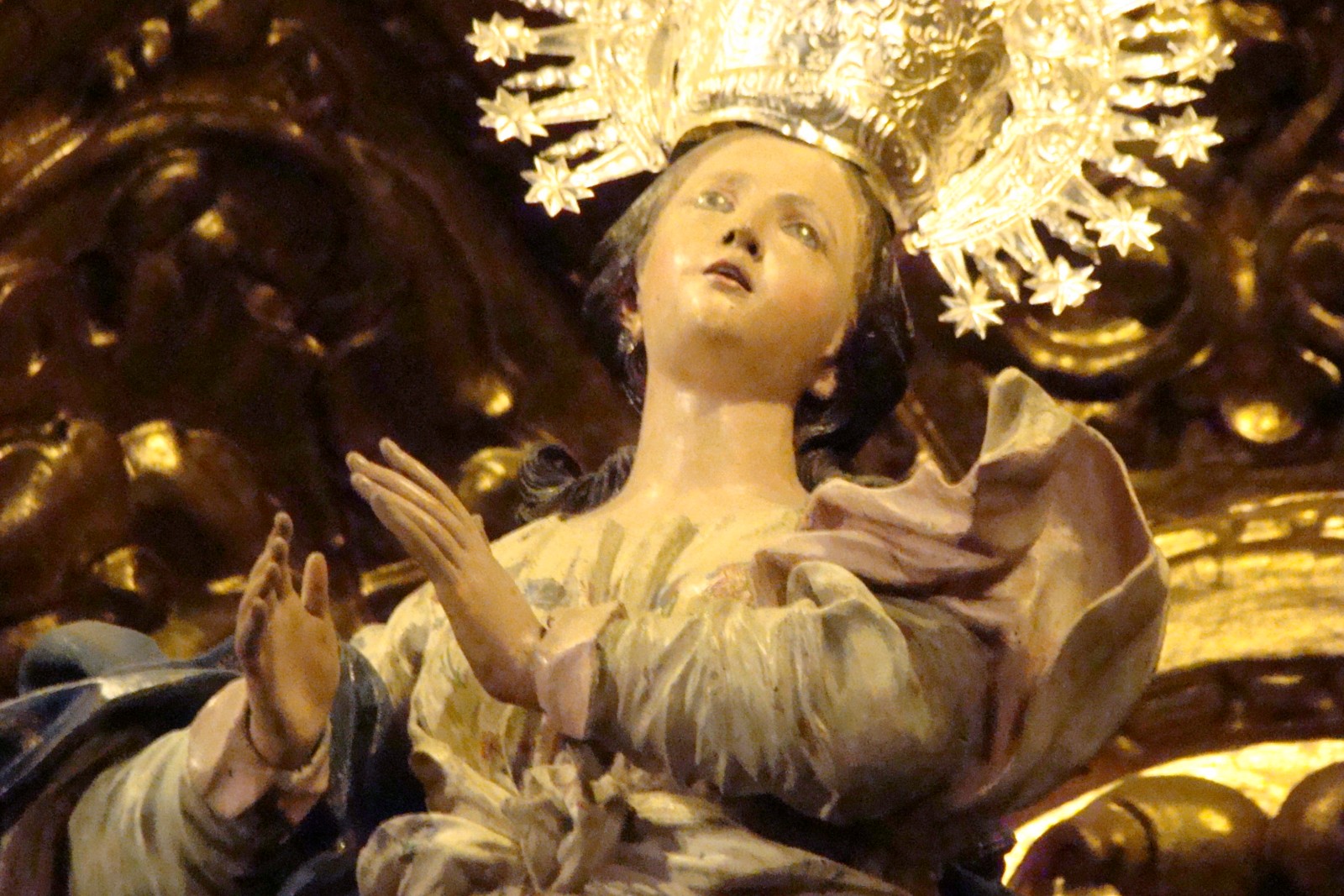 «El siglo XVIII en Sevilla fue pródigo en realizar imágenes de la Inmaculada Concepción, les mostramos a continuación dos ejemplos de ello, aunque de autoría anónima ambas son bellas representaciones de esta iconografía. La primera se encuentra en la Capilla Sacramental de la iglesia de San Lorenzo presidiendo el retablo y la segunda se encuentra en un retablo lateral de la Capilla de San José de la calle Jovellanos, junto a Sierpes.»