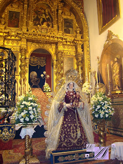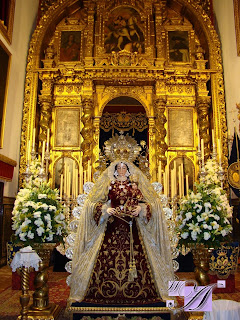 » Desde el día 12 hasta el próximo sábado 19 de febrero en la Ermita de Belén permanecerá en devoto besamanos Nuestra Madre de Dios de Belén Coronada, imagen titular de la Hermandad de Veracruz y Patrona de la localidad. La Virgen de Belén procesiona el jueves santo en su paso de palio como dolorosa y el domingo de Resurrección como imagen de gloria participando en las conocidas «carreritas» de Pilas. En este reportaje pueden ver imágenes del Besamanos que se está celebrando en la actualidad»
