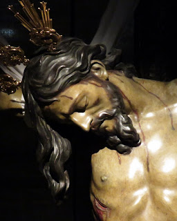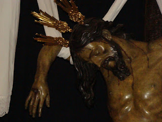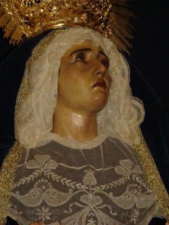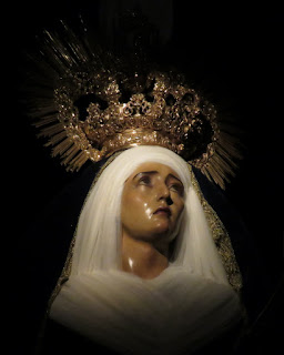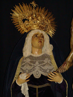 La Hermandad de la Quinta Angustia de Sevilla en los días previos a la semana santa prepara su anual besapiés y besamanos a sus titulares, mientras se instala el altar correspondiente las imágenes titulares son trasladadas desde su altar habitual a la parte delantera de la Capilla.