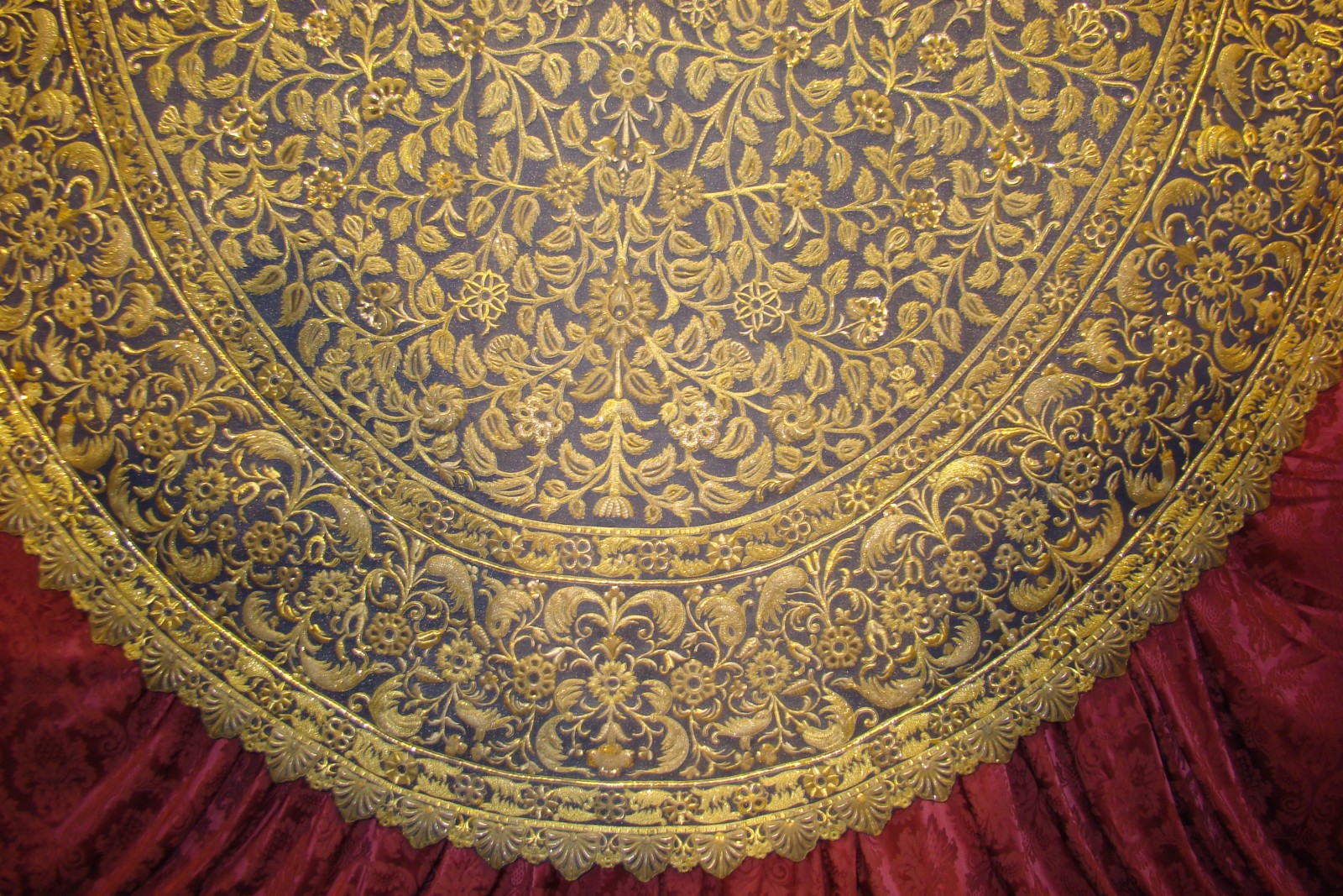 » En el salón apeadero del Ayuntamiento de Sevilla hasta el 10 de marzo permanecerá abierta la exposición «Loreto, la Domus Aúrea restaurada», cuyo principal motivo es mostrar la restauración que ha realizado el taller ecijano de D. Jesús Rosado, del manto de salida de Nª Sª de Loreto, titular de la Hermandad de San Isidoro, obra realizada en 1930 en el Taller de las Hermanas Granado. También se muestra otro de los estrenos para este año, los broches bordados de los faldones, así como otros elementos del paso de palio y enseres del ajuar de la Virgen. Todo el conjunto constituye una destacada «joya» de nuestra Semana Santa.»