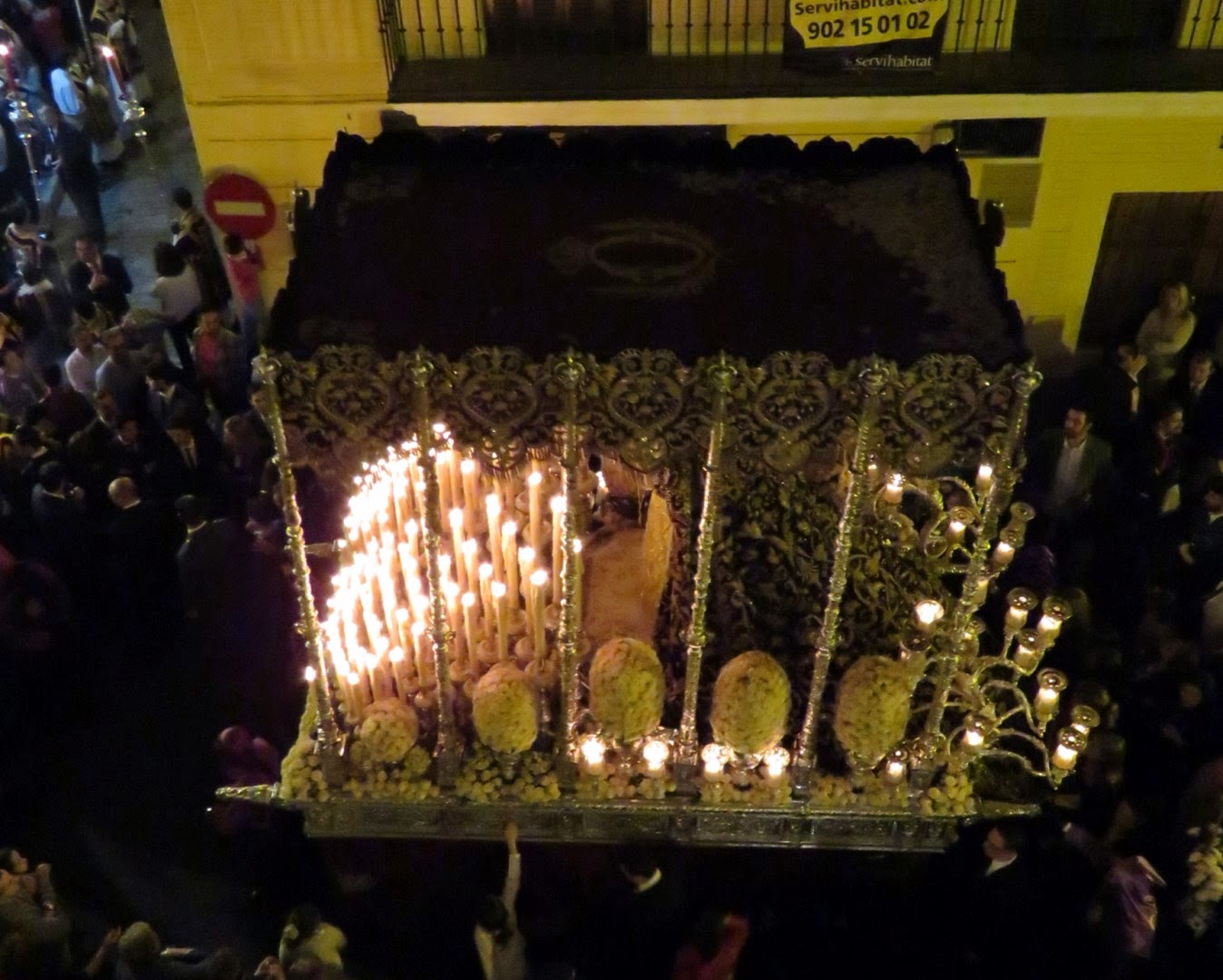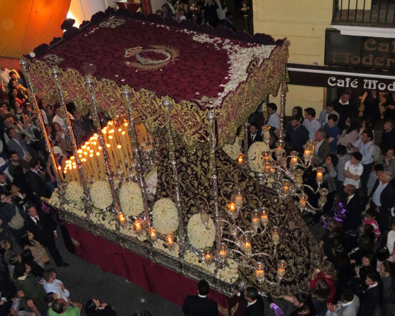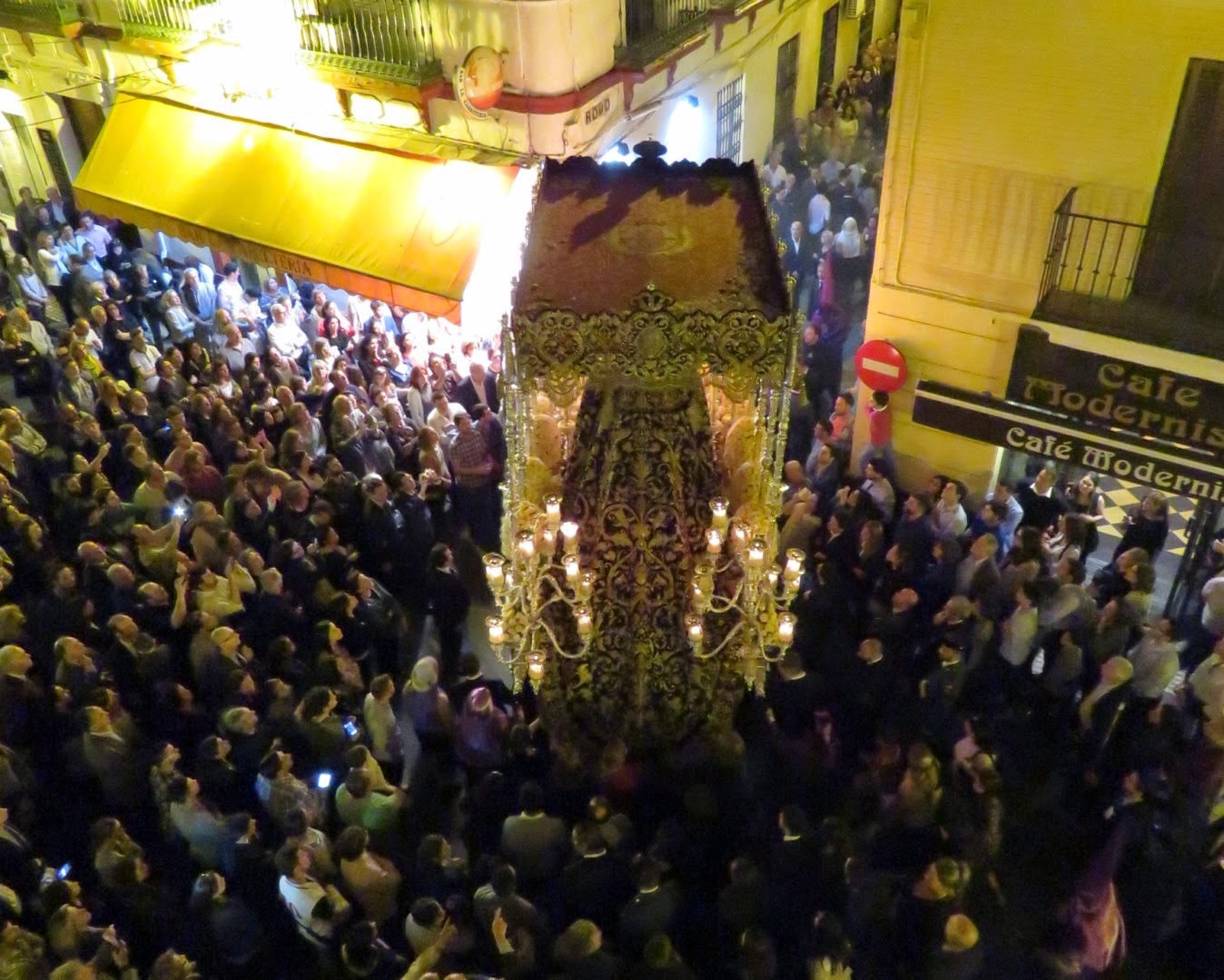 Los sevillanos en su inmensa mayoría vemos el discurrir de nuestras cofradías a pie de calle, solamente unos pocos pueden verla desde los balcones y azoteas. La visión es totalmente diferente, no solamente por el cambio de ángulo visual sino porque se pueden apreciar y ver muchas cosas que desde abajo es imposible su contemplación. Les vamos a mostrar una serie de reportajes de varias cofradías en sus discurrir por las calles sevillanas, en primer lugar aquellas que pasan por delante de la Capilla de Nª. Sª. del Rosario sede de la Hermandad de Las Aguas. El viernes Santo pasa en segundo lugar sobre las once y media horas la Hermandad de la O.