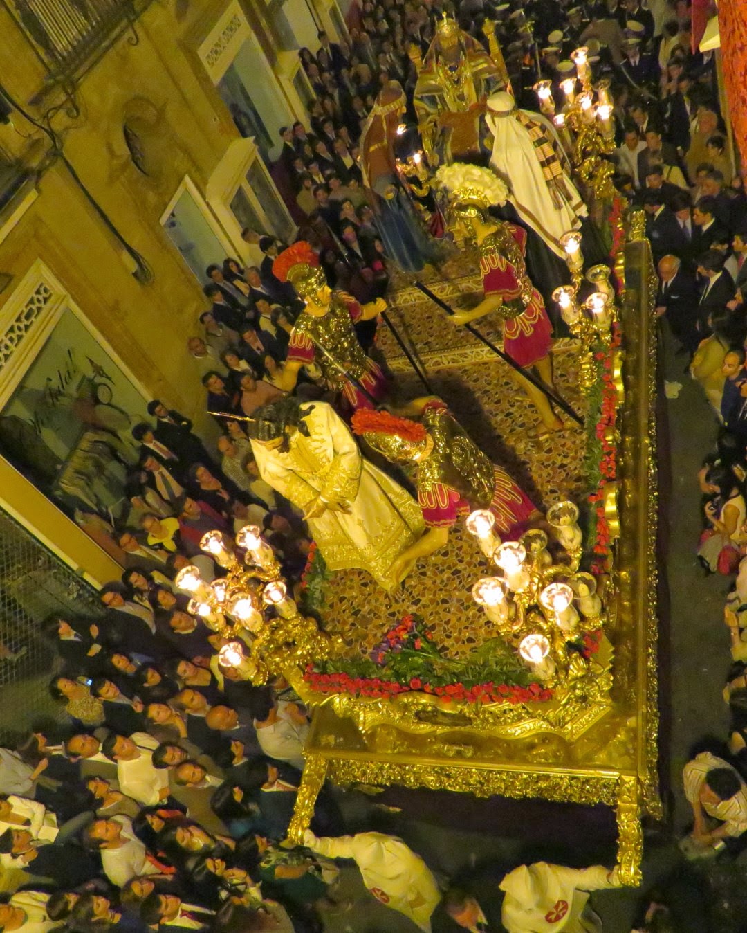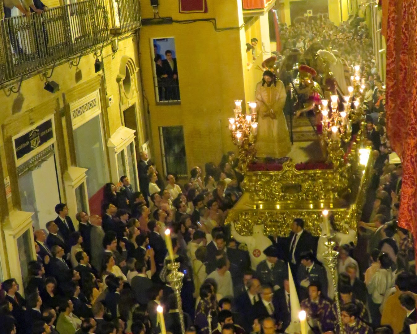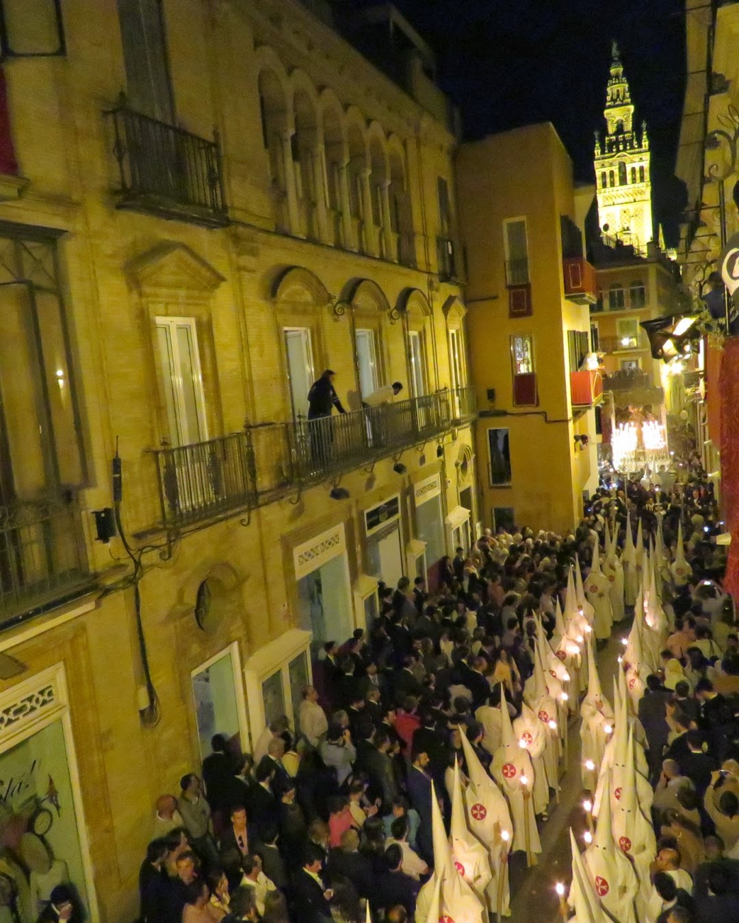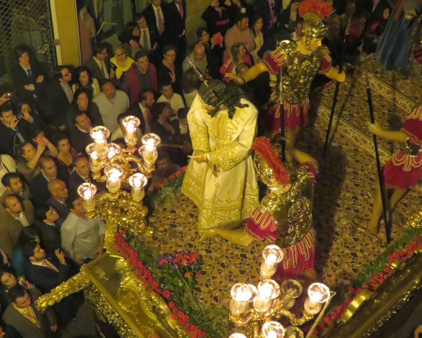 Los sevillanos en su inmensa mayoría vemos el discurrir de nuestras cofradías a pie de calle, solamente unos pocos pueden verla desde los balcones y azoteas. La visión es totalmente diferente, no solamente por el cambio de ángulo visual sino porque se pueden apreciar y ver muchas cosas que desde abajo es imposible su contemplación. Les vamos a mostrar una serie de reportajes de varias cofradías en sus discurrir por las calles sevillanas, en estas entregas en concreto se trata de la céntrica calle Francos. En primer lugar el paso de la Hermandad de la Amargura el Domingo de Ramos.