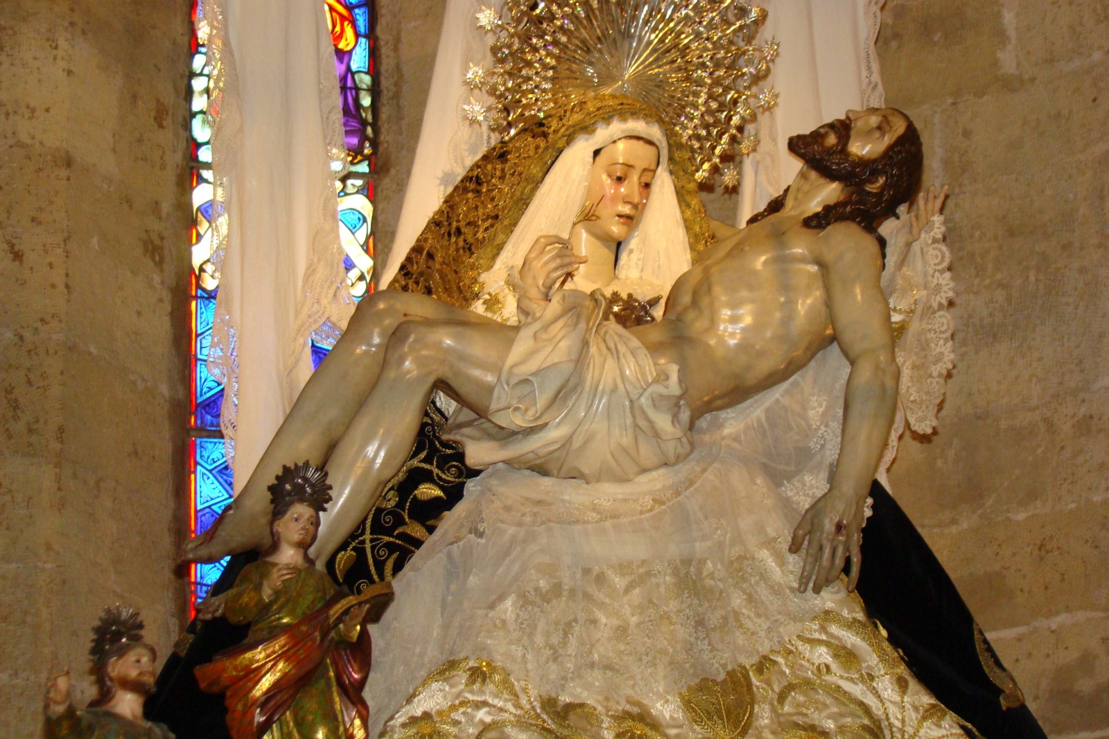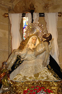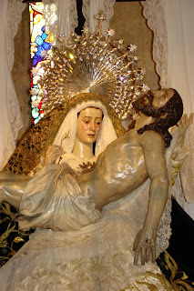 » El conjunto escultórico de la Virgen de las Angustias, la última obra realizada por el maestro Juan de Mesa y Velasco, la concluyó en 1627 unos días antes de su muerte, ha sido restaurado recientemente por el IAPH. Unos días antes de semana santa le fue entregada a la Hermandad para que realizará su salida procesional del jueves santo, hecho que por la lluvia no pudo celebrarse,les mostramos como han quedado las imágenes después de su intervención.»