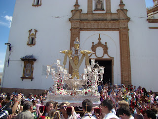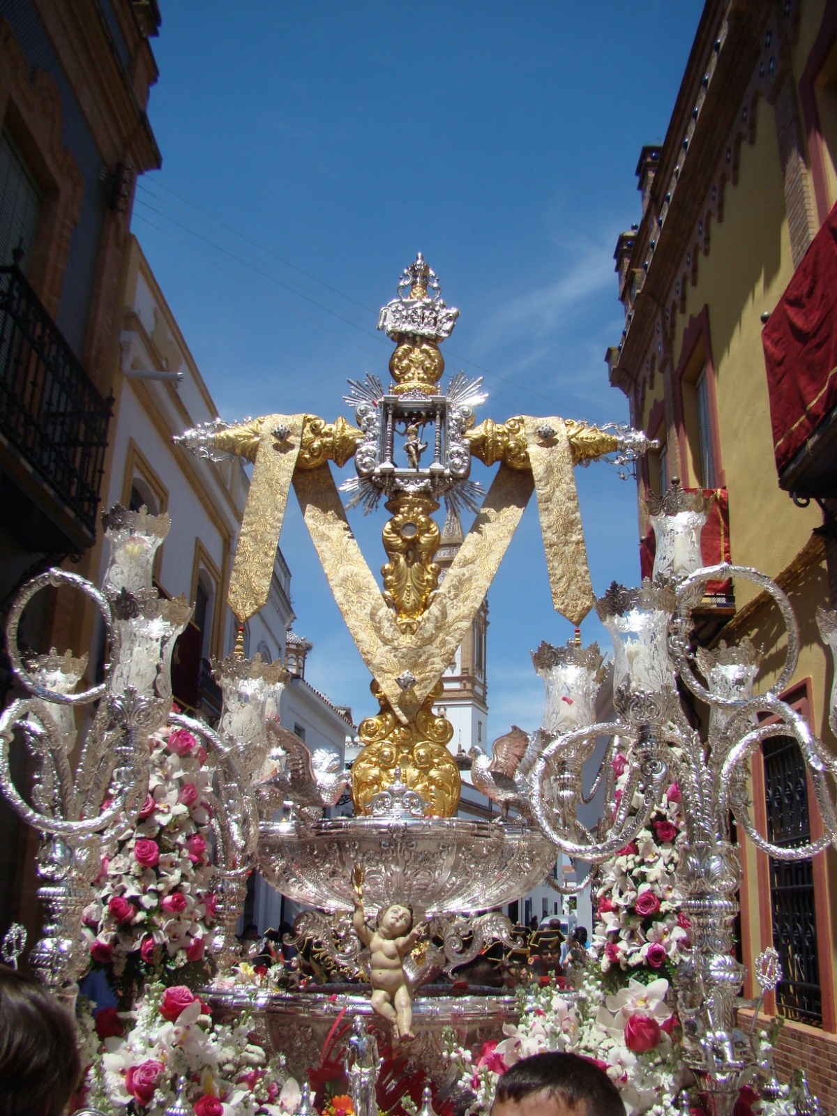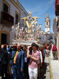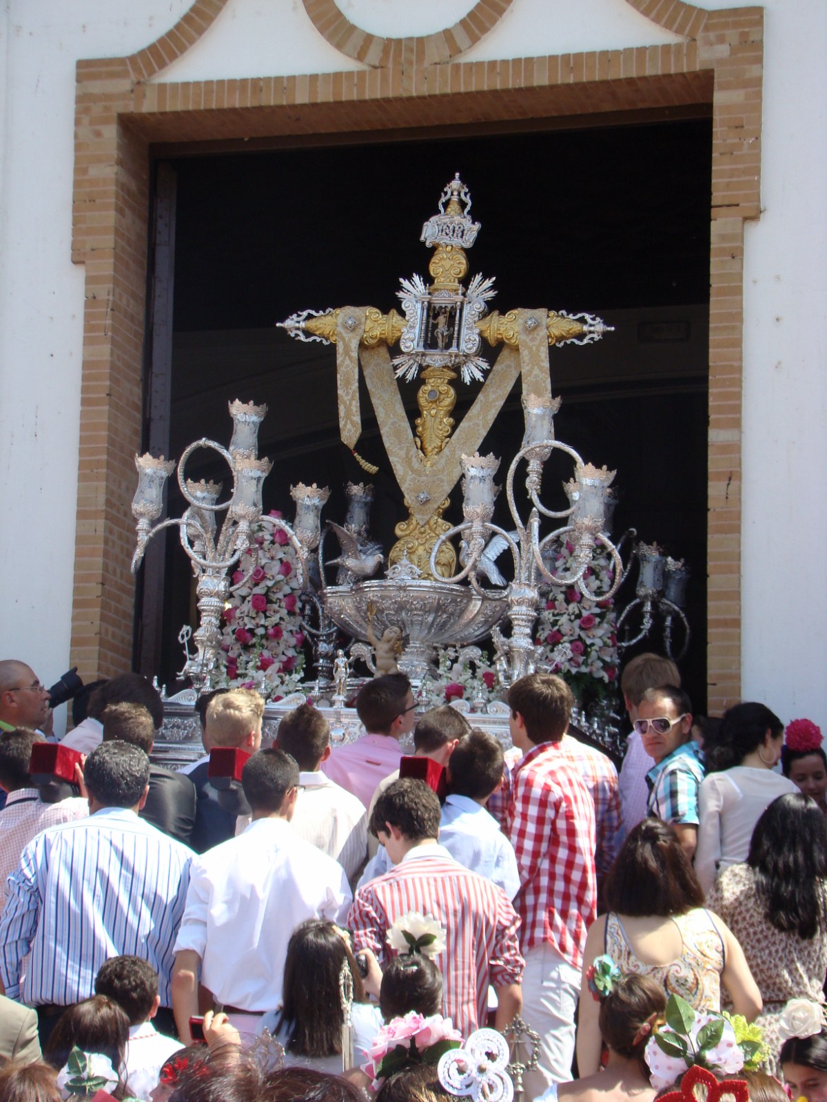 En la localidad onubense de Rociana del Condado, el primer domingo de mayo es el “Día de la Cruz”. Procesionan cinco cruces pertenecientes a diferentes calles de la población, cada una de ellas tiene capilla pero la procesión general se realiza desde la parroquia de San Bartolomé. La que desfila en último lugar por ser la más antigua, es la Cruz de La Fuente, un año más llevaba de acompañamiento musical a la Agrupación Musical Virgen de los Reyes de Sevilla.