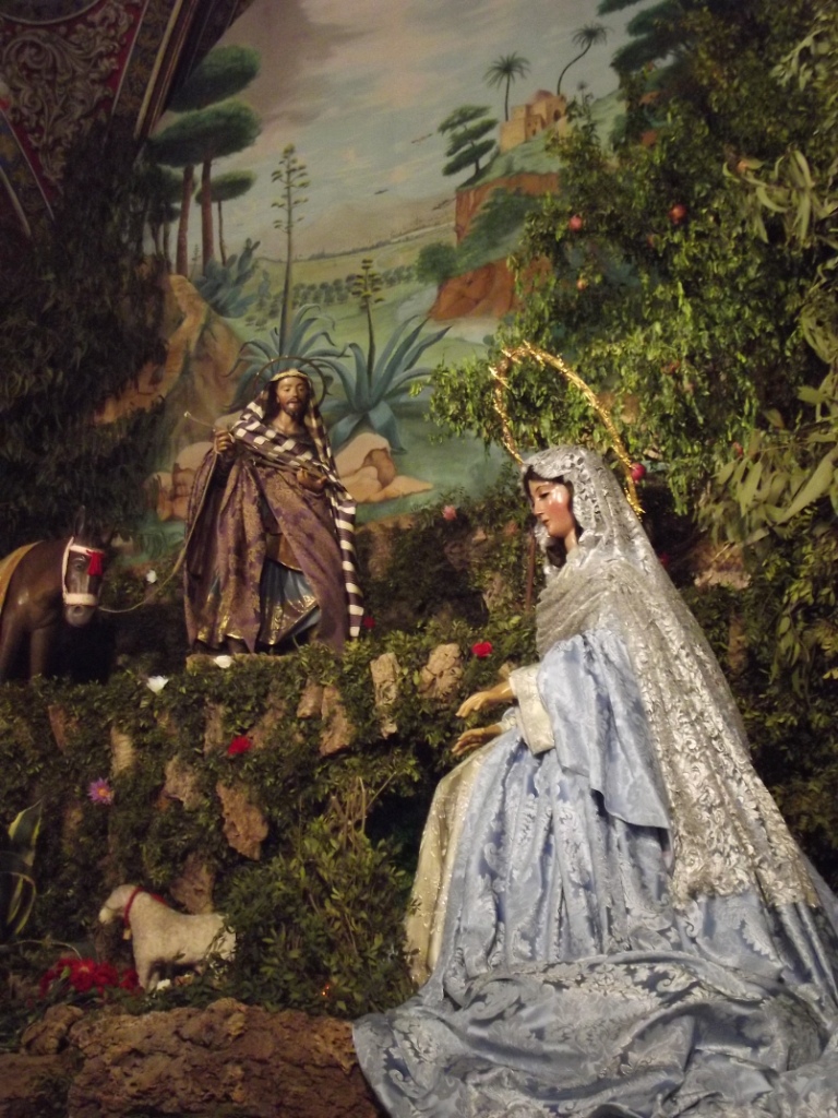 En esta ocasión traemos un reportaje completo de las organizadas anualmente por la Hermandad de la Soledad de Castilleja de la Cuesta, en su templo parroquial de Santiago Apóstol. Estos cultos transcurren desde el día 16 al 24 de diciembre de cada año. En el presbiterio de la iglesia parroquial se monta un gran escenario con plantas naturales (destacando el lentisco) y fondos pintados, variando diariamente la disposición de las imágenes protagonistas. Éstas son las de San José, imagen anónima del siglo XVIII y la Virgen de la Soledad, imagen anónima de finales del siglo XVI. Destacar en cuanto a esto el enorme trabajo de los priostes de la Hermandad y del vestidor de la Virgen al tener que cambiarse diariamente de ropa la imagen mariana.