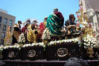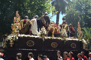 » Mucho se ha hablado y se sigue comentando en los círculos cofrades de la ciudad sobre la proposición de la Hermandad de la Cena de procesionar su paso de misterio al completo dentro del cortejo del Corpus de Sevilla 2011. Las estética del paso con el apostolado luciendo mantolines bordados, los candelabros de guardabrisa, el exorno floral acorde con la celebración no ha dejado a nadie indiferente y ha sido una lástima que no formara parte del mismo ante la negativa de la autoridad eclesiástica, por una vez no hubiera pasado absolutamente nada y a los antecedentes nos remitimos. En Jerez de la Frontera desde el año 2003 hasta el 2008 el paso de la Santa Cena participaba en la procesión del Corpus, seis ediciones en las que se pudo disfrutar por las calles jerezanas del antiguo paso del Cachorro de Triana con el apostolado de Ortega Brú, en la actualidad no participa, incluso han desaparecido los diversos pasos que formaban parte del cortejo y que cada año eran distintos, casualmente en Jerez también han cambiado de Obispo, esperemos que estas tradiciones tan bonitas no se pierdan por mor de la curia.»