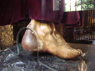 Gracias a la feliz idea que ha tenido la Hermandad Sacramental de Pasión de adelantar el altar donde se ubica la imagen de su titular Nº Padre Jesús de Pasión y colocar un deambulatorio, podemos ver una imagen de sus pies que hasta ahora resultaba difícil de apreciar. Además esa proximidad permite adorar y besar su divino pie. Les queremos mostrar de cerca esos pies que tantas plegarias y rezos llevan en sus plantas.