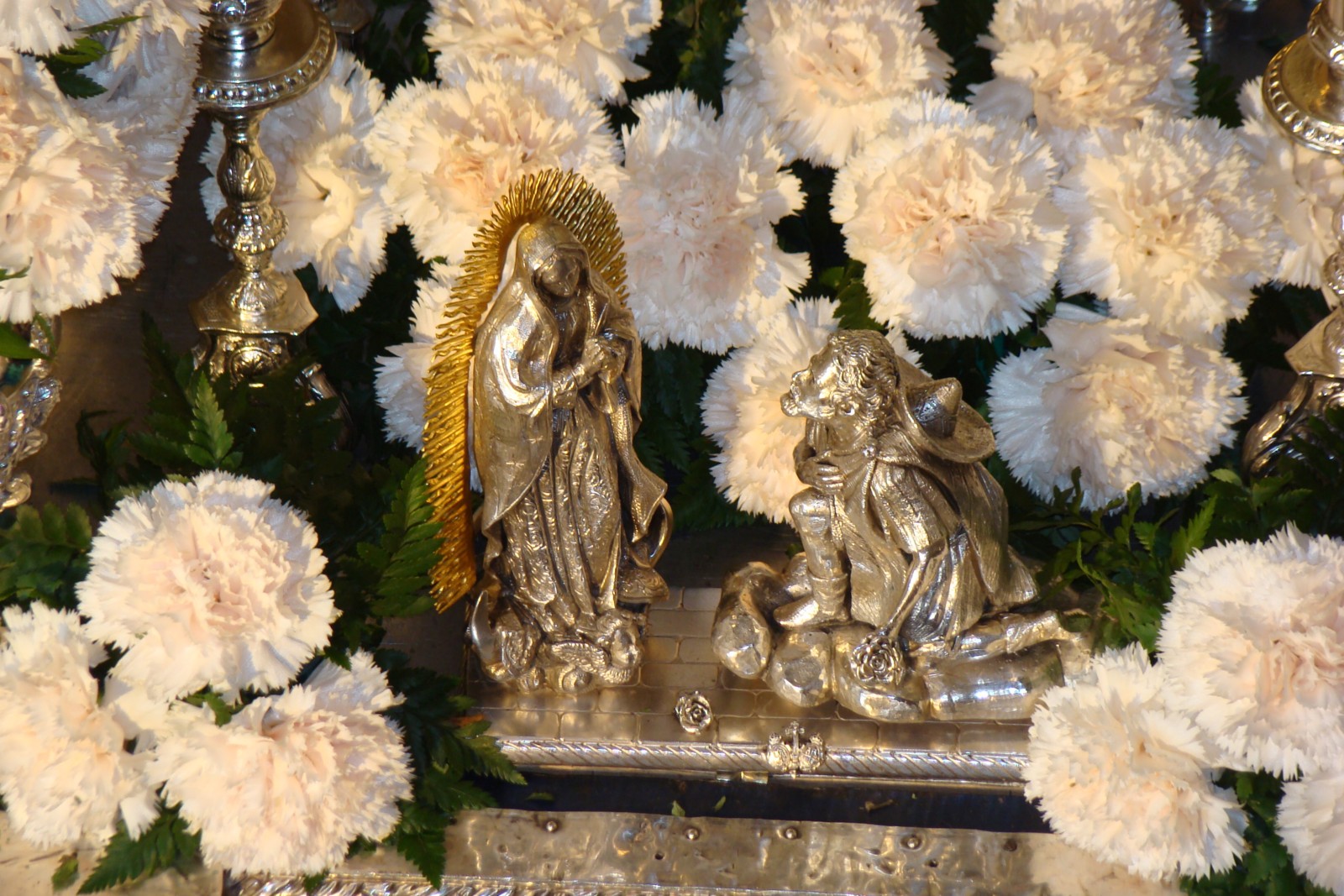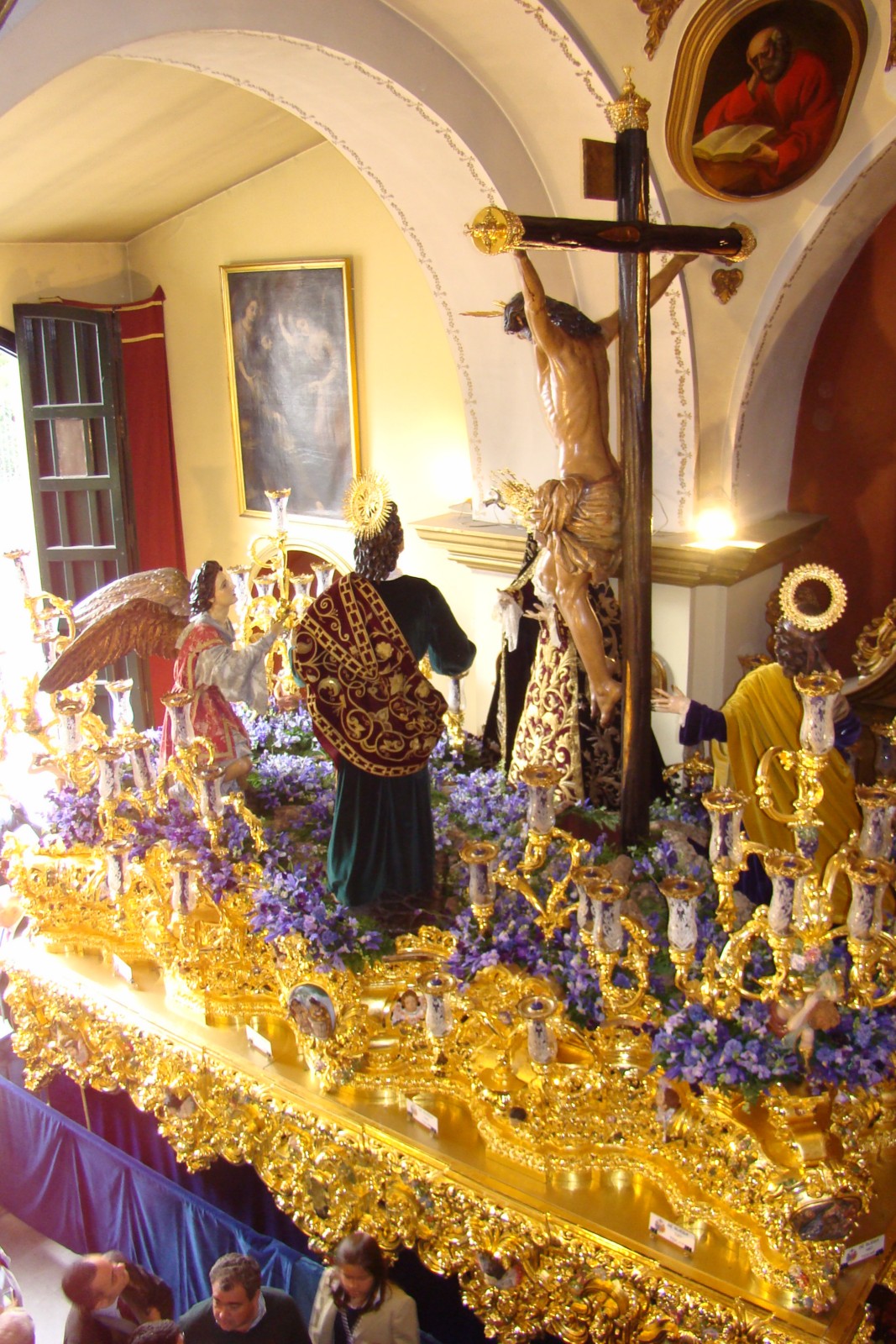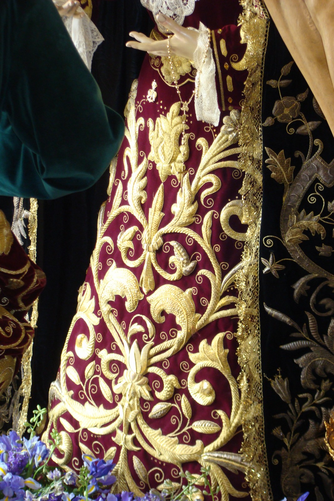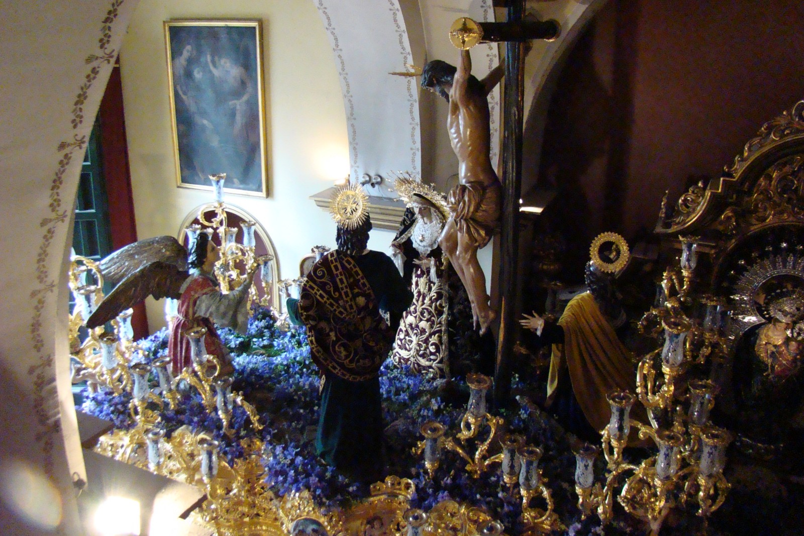 » Desgraciadamente el Lunes Santo del 2012 pasará a la historia por ser un día lluvioso donde nuestra hermandad no pudo realizar la salida procesional en estación de penitencia a la Catedral de Sevilla. De todas formas siempre hay cosas dignas de destacar: el exorno floral de los dos pasos, sobre todo el del palio con claveles de color rosa claro,con ausencia total de rosas y la presencia de Nª Sª del Mayor Dolor restaurada que lucia más bella que nunca, que portaba una saya cedida por nuestro hermano Luis Álvarez Duarte con bordados antiguos de las Hnas Antúnez.»