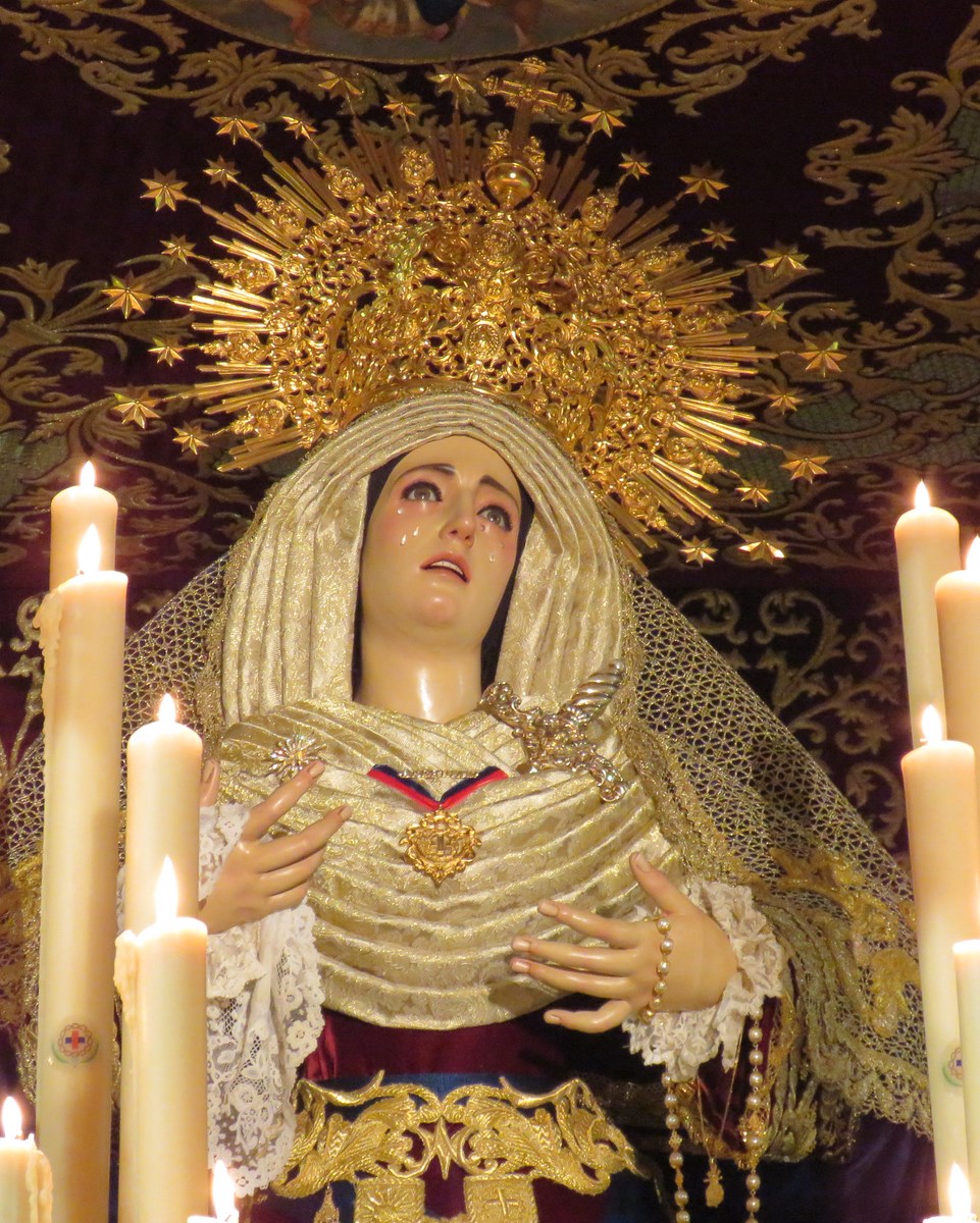 El domingo 11 de octubre la localidad sevillana de Écija celebró una magna procesión para conmemorar el 450 aniversario del voto concepcionista que la ciudad astigitana realizó en defensa del dogma de la Inmaculada. Salieron en procesión todos los pasos de Virgenes existentes en la localidad. Les mostramos en cuarto lugar la imagen de Nª. Madre y Sª. de las Lágrimas, obra de autor desconocido del siglo XVIII, de la Hermandad del Cautivo que salió desde la Iglesia de Santa María.