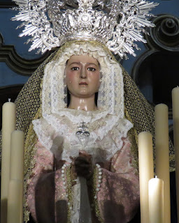 El domingo 11 de octubre la localidad sevillana de Écija celebró una magna procesión para conmemorar el 450 aniversario del voto concepcionista que la ciudad astigitana realizó en defensa del dogma de la Inmaculada. Salieron en procesión todos los pasos de Vírgenes existentes en la localidad. Les mostramos en undécimo lugar la imagen de Nª Sª de la Fe, obra de autor anónimo del siglo XVII , de la Hermandad de Jesús sin Soga, que salió desde la Iglesia de Santa Bárbara.