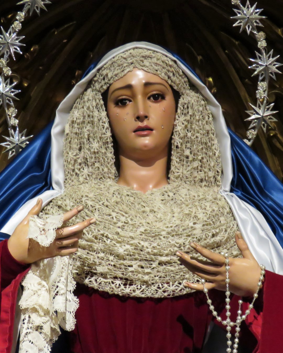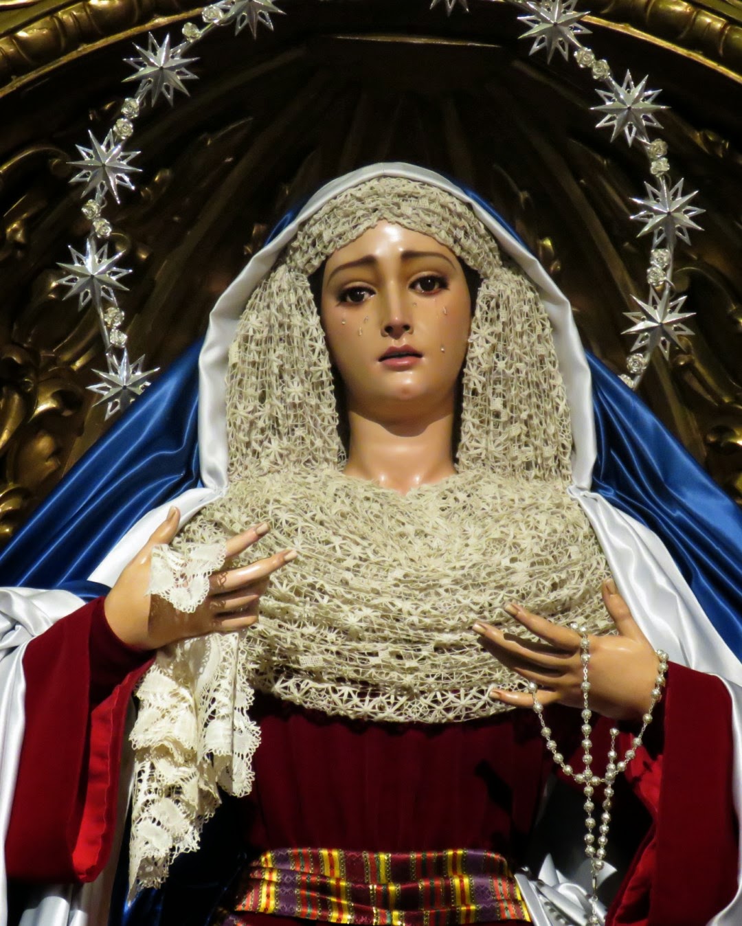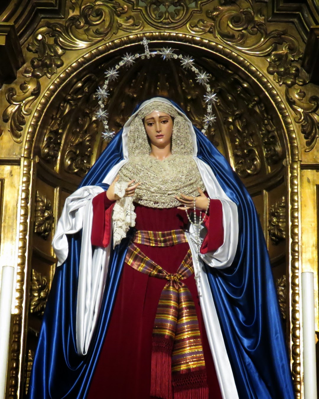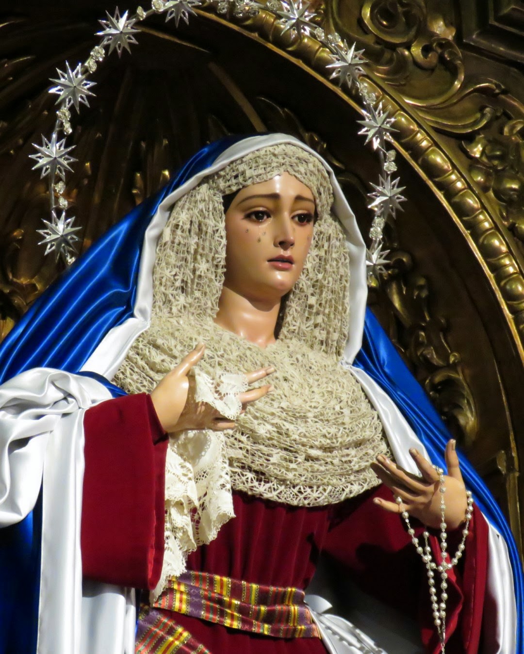 Como es costumbre en Sevilla una vez llegada la cuaresma nuestras dolorosas son vestidas para la ocasión con el atavío denominado de “hebrea” tal y como pusiera en boga el recordado bordador Juan Manuel Rodríguez Ojeda. Les mostramos a nuestra dolorosa titular tal y como se encuentra vestida en la actualidad por nuestro hermano Antonio Bejarano.