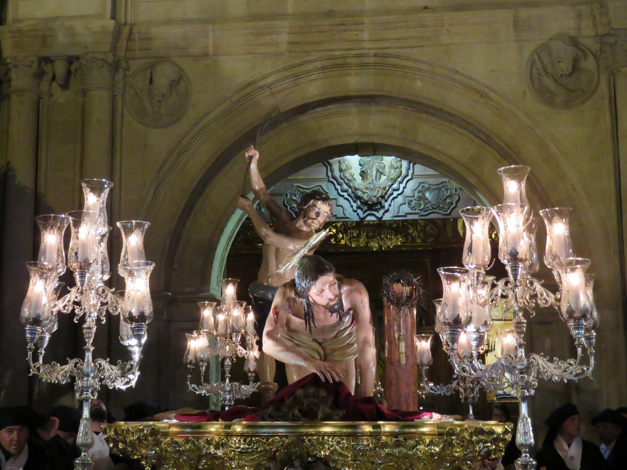 El momento de la pasión que revela esta escultura barroca no es muy habitual en la imaginería andaluza. Representa a Jesús, con rostro de conmovedora expresión, después de la flagelación, arrodillado y recogiendo latúnica.
