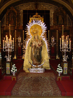 En el mes de noviembre se cierra el capítulo de las glorias de Sevilla de una forma muy brillante ya que dos de las Hermandades más antiguas y con mayor tradición y patrimonio celebran sus cultos principales. El primer fin de semana de noviembre ha sido el día de los besamanos de Nª Sª Reina de Todos los Santos y de Nª Sª del Amparo. El próximo domingo 11 saldrán en procesión gloriosa por las calles de Sevilla. Sus templos de residencia lucian espléndidos en esta jornada con los bellos altares instalados para honrar a estas dos imágenes que se encuentran entre lo mejor que salió de la gubia del escultor Roque Balduque.