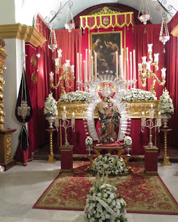 En el mes de mayo la Hermandad de la Divina Pastora de Triana celebra su anual besamanos en la iglesia de Santa Ana. El altar se instala delante de la capilla donde recibe culto durante todo el año. Les mostramos imágenes del instalado en el presente año 2015.