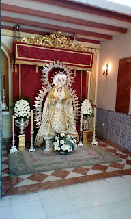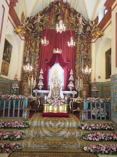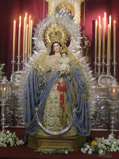 La Hermandad filial de Sevilla de Nuestra Señora del Mar, Patrona de Almería con sede canónica en la iglesia del Hospital de la Misericordia ha celebrado en este mes de mayo el sesenta aniversario fundacional. Con tal motivo ha organizado una serie de actos como el triduo dedicado a la Virgen, una exaltación poética, el besamanos y la primera salida procesional por las calles de Sevilla de esta imagen que realizará el escultor Antonio Castillo Lastrucci en 1959. Les mostramos el altar de besamanos instalado para la ocasión.