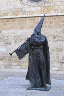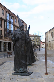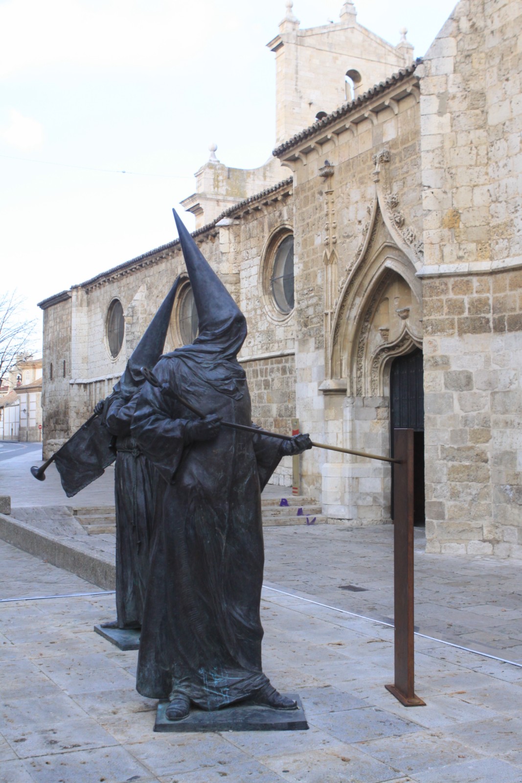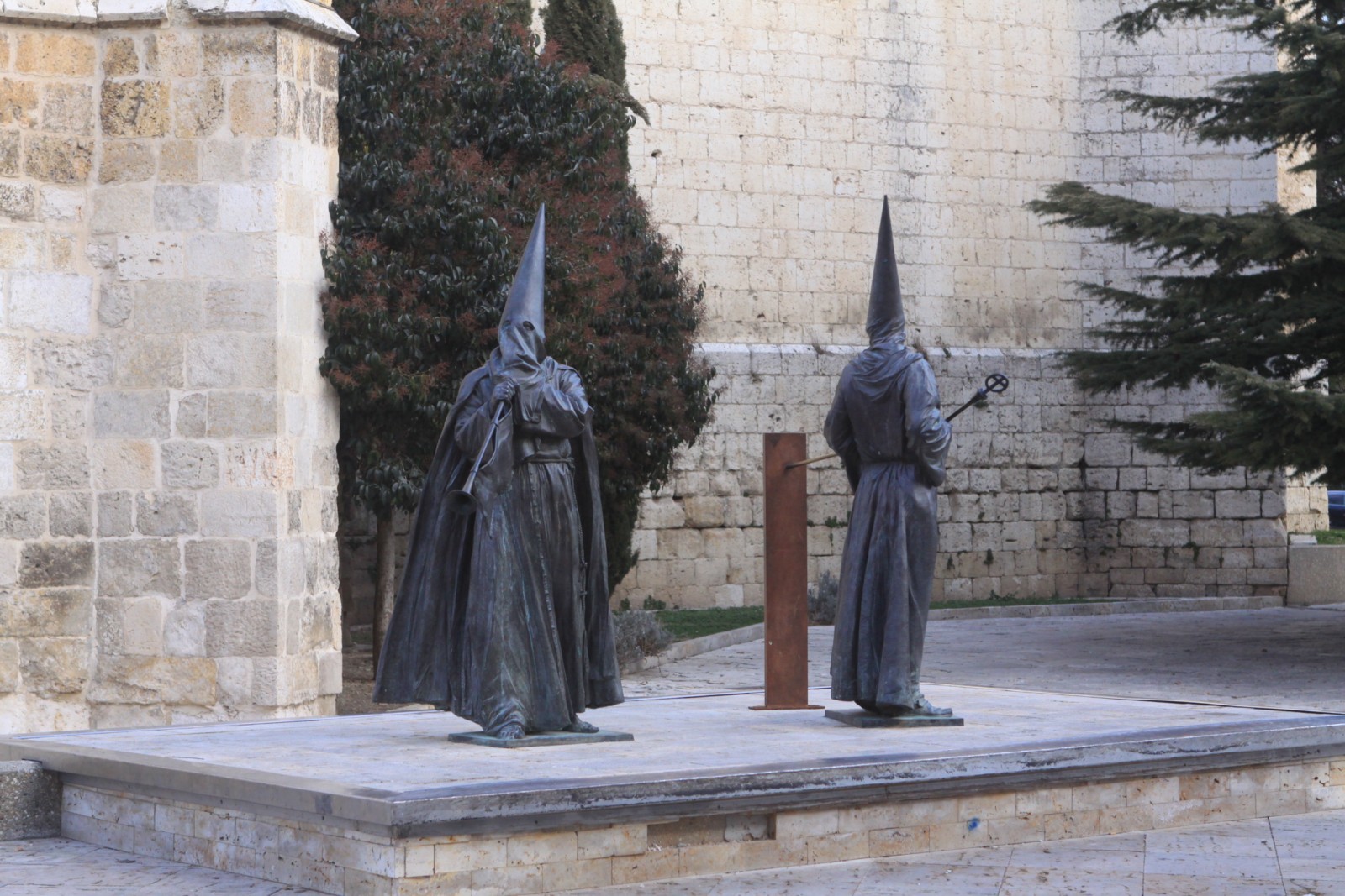 » En Palencia capital junto a la iglesia conventual de San Pablo se encuentra el monumento dedicado a la Semana Santa palentina. Es obra del escultor Oscar Albariño y fué realizado en el año 2008.Representa a los dos tipos de vestimenta de nazarenos existentes en la ciudad, el que tiene la trompeta simboliza «El toque del Tararú» típico sonido que acompaña a las procesiones en su discurrir por las calles, el otro nazareno con la vara representa la «Llamada de Hermanos» que se hace por cada una de las Hermandades en la víspera de la procesión.»