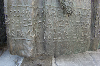 » En la localidad de Vélez-Málaga y concretamente en la calle Sevilla, junto a la iglesia parroquial de San Juan Bautista se encuentra situado el monumento a la Semana Santa Veleña, declarada de interés turistico nacional de Andalucía. La obra fué realizada por el artista local D. Francisco Martín, siendo inaugurada en el año 2007. Tiene la particularidad de que en la parte inferior de las túnicas se ha grabado el nombre de las diferentes advocaciones de las cofradias y hermandades del lugar.»