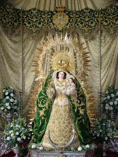 “ El pasado domingo 27 de enero regresó a su ermita del Valle de Hinojos la imagen de Nª Sª de la Esperanza, titular mariana de la Hermandad de la Veracruz de la localidad onubense, después de ser restaurada. La restauración la ha llevado a cabo el equipo del profesor D. Francisco Arquillo en Sevilla. La imagen obra de Gabriel de Astorga en el siglo XIX lucía sus mejores galas como Virgen de Gloria. Hay que hacer constar que esta imagen también sale como dolorosa en Semana Santa y ataviada como Divina Pastora. Para realzar el acto del regreso, un escuadrón de la Legión Española rindió honores a la Virgen.”