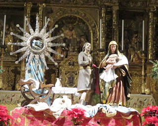 La costumbre de realizar nacimientos o belenes con imágenes de tamaño real cada día se encuentra más extendida por todos los lugares de nuestra tierra. Les mostramos dos nuevos ejemplos, concretamente de la localidad sevillana de Carmona. En primer lugar el instalado en el presbiterio de la iglesia de Santa María la Mayor y en segundo lugar el de la iglesia del Divino Salvador.