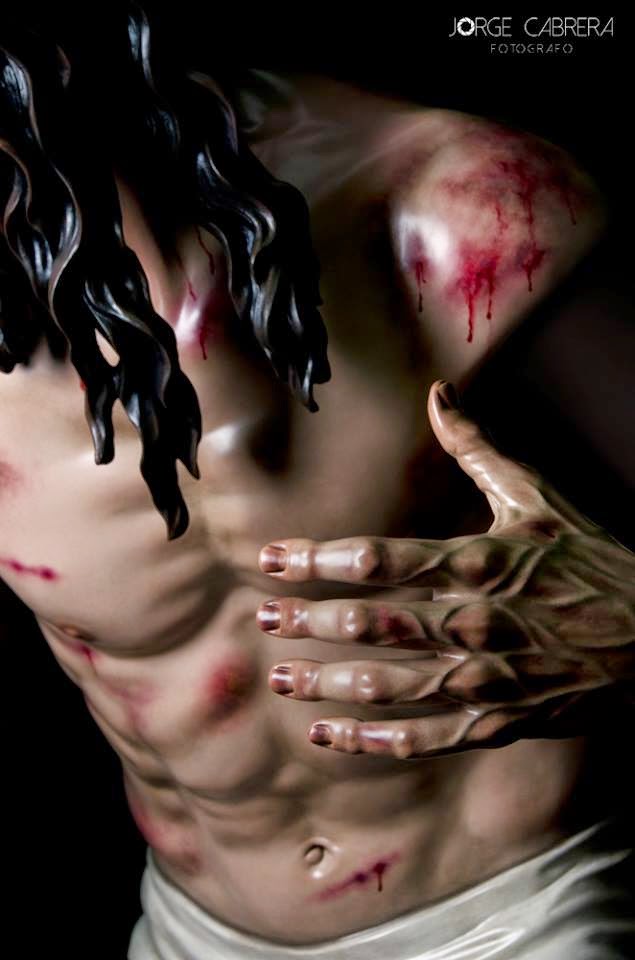 Nueva imagen de tamaño natural, tallada en madera de cedro y anatomizada íntegramente, y policromada al óleo en toda su totalidad, sin ningún otro tipo de pinturas (Esmaltes, acrílicos, etc). Para la hermandad alicantina de la flagelación.