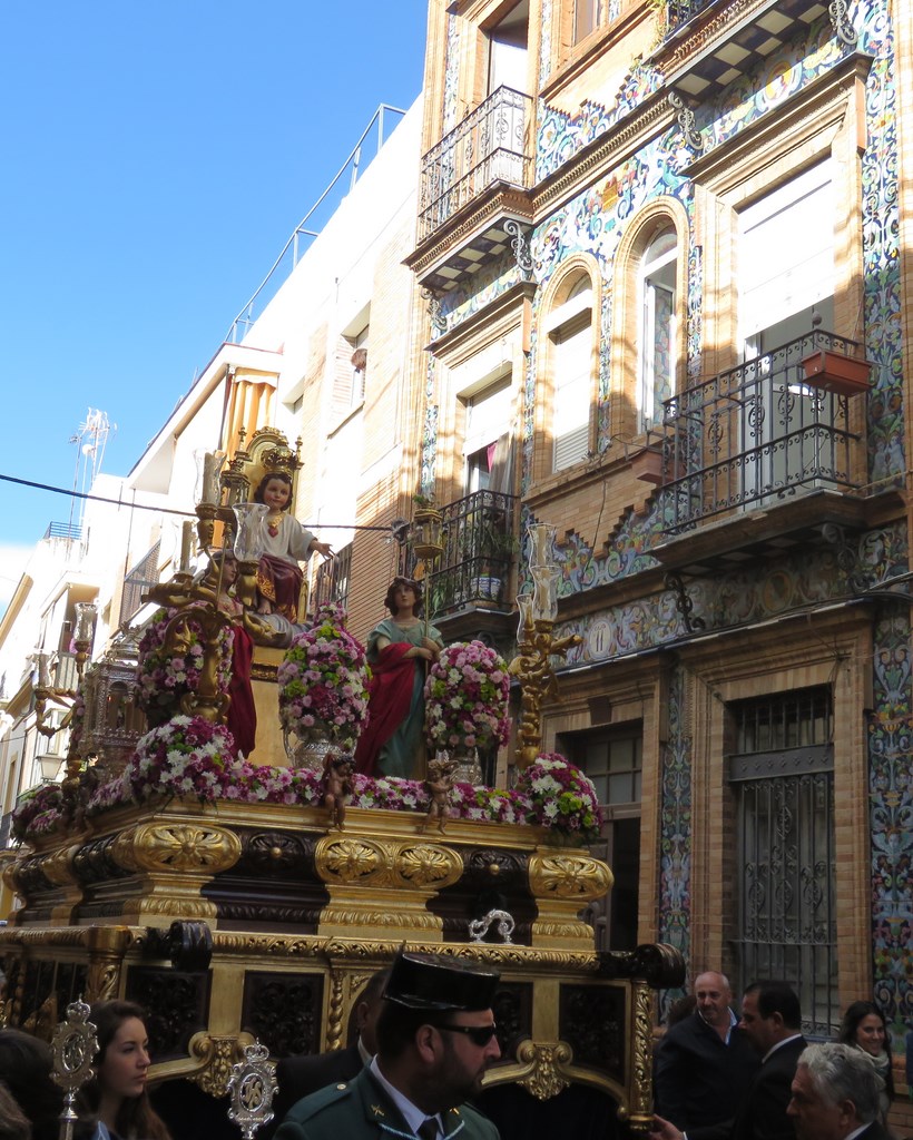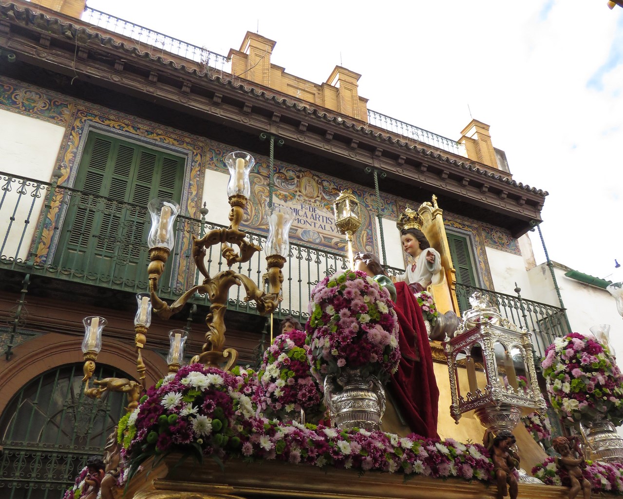 En el barrio de Triana en torno a la festividad religiosa se realiza anualmente la procesión en honor de Cristo Rey. Dicha imagen del Niño Jesús entronizado pertenece al colegio de Cristo Rey que le rinden culto en su capilla. La procesión parte desde la parroquia de Santa Ana para recorrer las principales calles de la Triana antigua. En el presente año el acompañamiento musical lo hizo la Banda de Cornetas y Tambores de San Juan Evangelista de la Hermandad de la Esperanza de Triana.