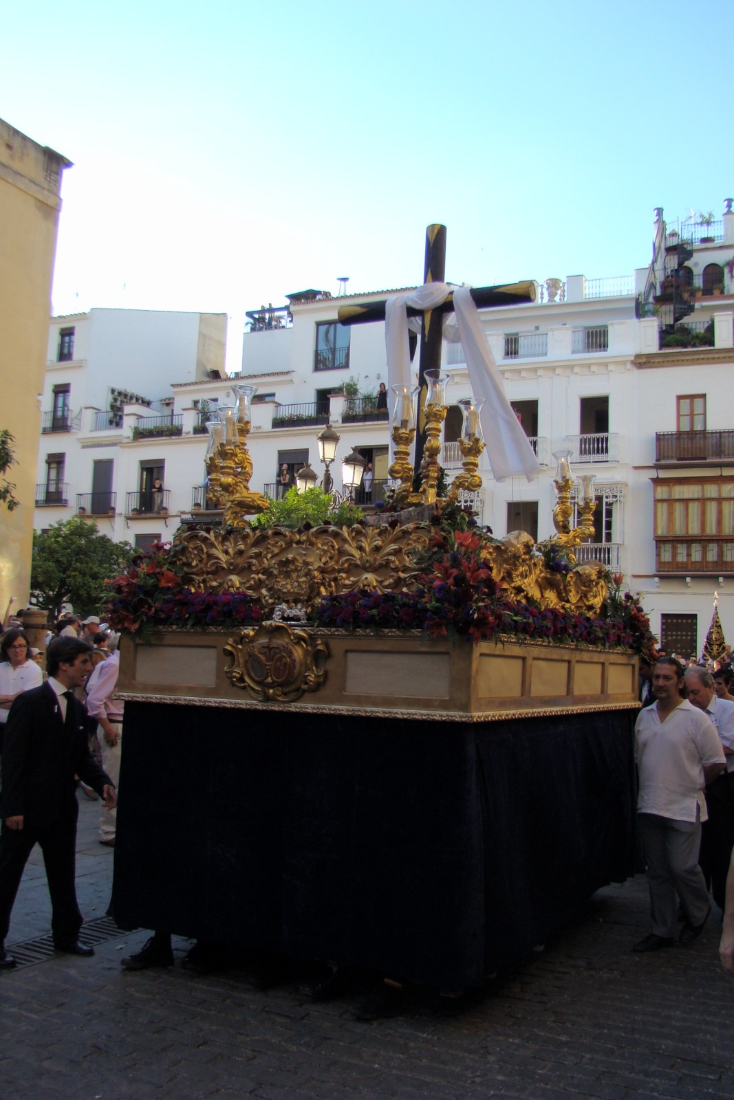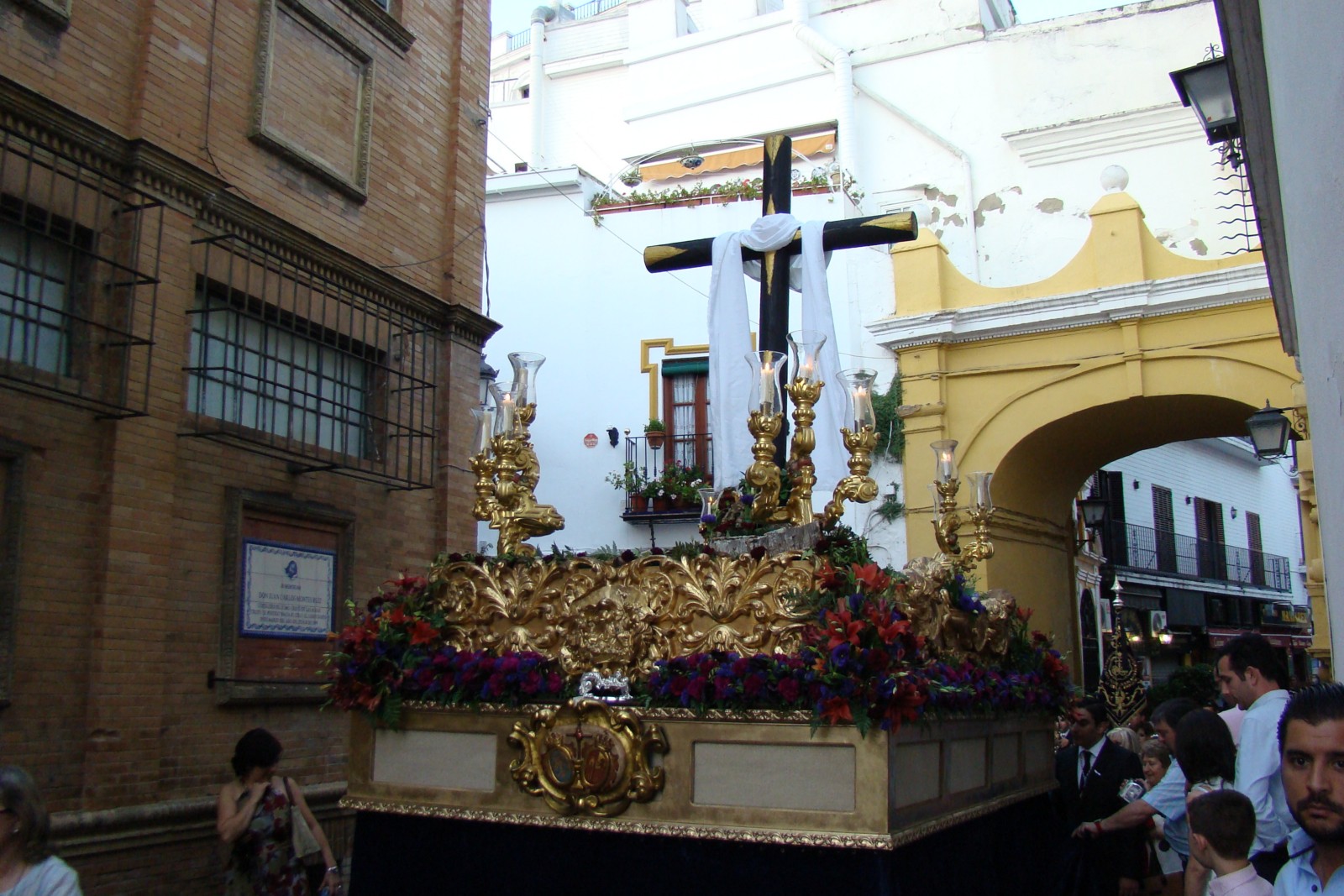 » En la tarde del sábado 21 de mayo procesionó por las calles del Arenal y alrededores de la Catedral el paso de la Cruz de mayo de la Hermandad de Las Aguas. Este año ha tenido como principales novedades el acompañamiento musical, realizado por la Agrupación Musical Nº P. Jesús Nazareno de La Roda de Andalucía, otro hecho destacado ha sido la mejora de los elementos del paso, canasto, repiraderos y candelabros, estos últimos cedidos por la Hermandad de Montserrat y la presencia de la Santa Cruz en solitario en el monte del paso».