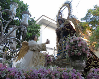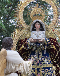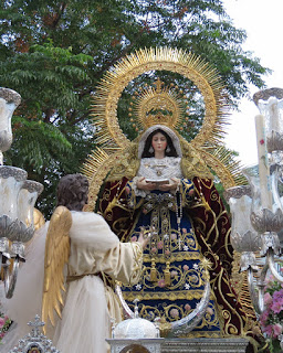 El sábado 30 de mayo salió en procesión gloriosa por las calles de la barriada sevillana de Juan XXIII la imagen de Nª. Sª. de la Anunciación acompañada del Arcángel San Gabriel. El acompañamiento musical lo realizó la Banda Municipal de Gines. Les mostramos diversos momentos de la misma.