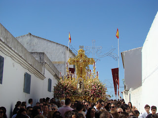 » En la localidad onubense de Paterna del Campo celebran las procesiones de las Cruces en el mes de septiembre con motivo de que el 14 del mismo es la festividad de la Exaltación de la Cruz. En la mañana del domingo más próximo a este día procesiona la Santa Cruz de Abajo desde su Capilla hasta la iglesia parroquial de San Bartolomé.El acompañamiento musical fue realizado por las Bandas de San Juan Evangelista y Nª Sª de los Reyes, ambas de Sevilla.»
