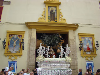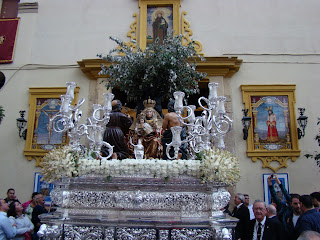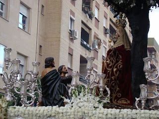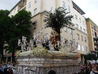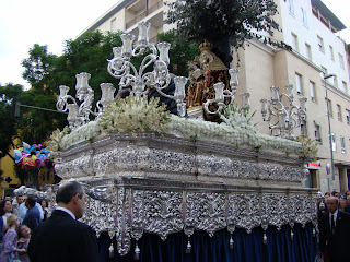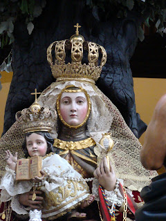 » La Hermandad de gloria de Nª Sª de Valvanera, que reside en la Iglesia de San Benito de la ciudad de Sevilla realizó el pasado sábado 29 de septiembre su salida procesional anual por las calles aledañas del barrio de la Calzada. La imagen de la Virgen representa a la Patrona de La Rioja que es venerada en el monasterio del mismo nombre allá por la sierra de Cameros. El acompañamiento musical fue realizado por la Banda de música de Nª Sª del Sol.»
