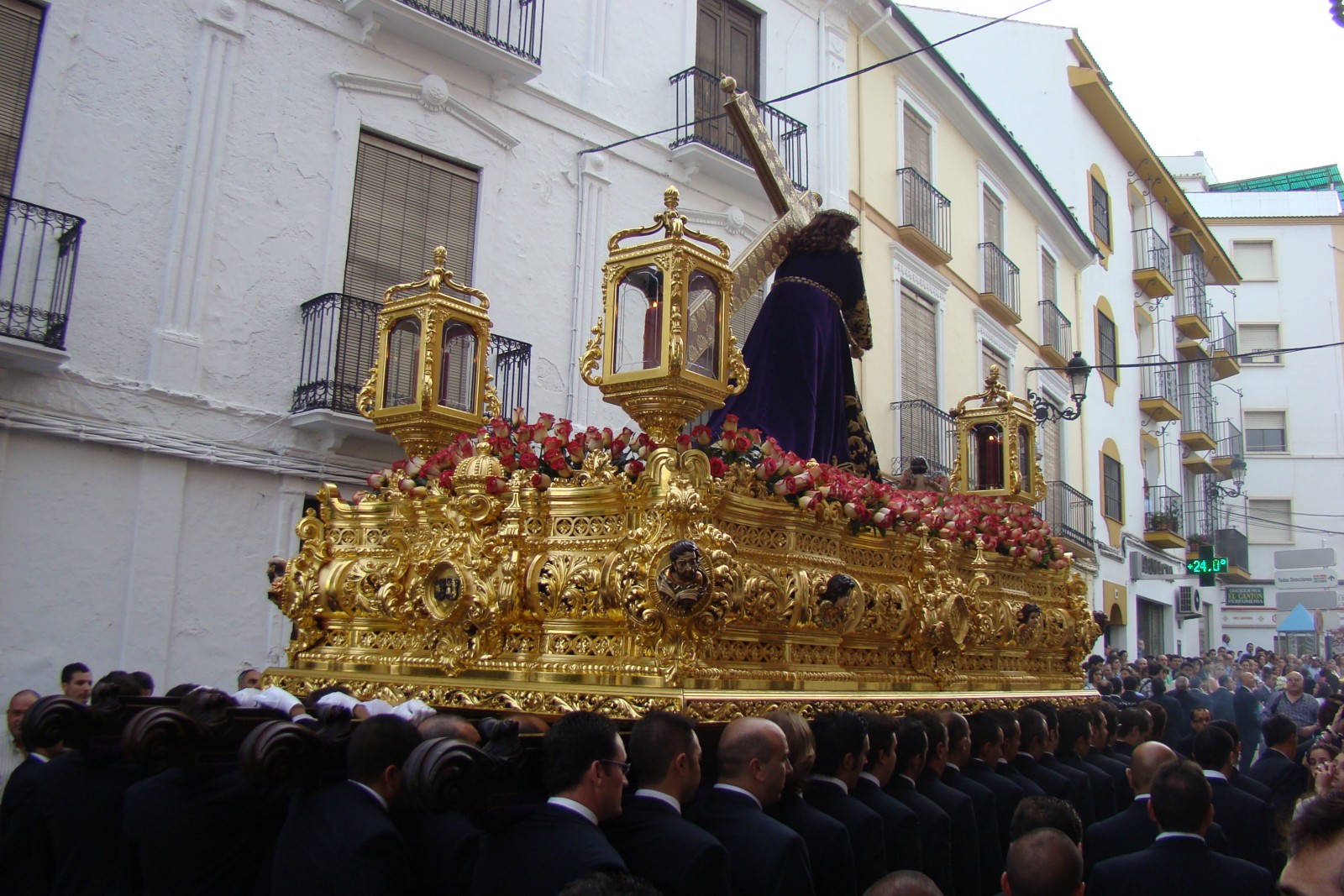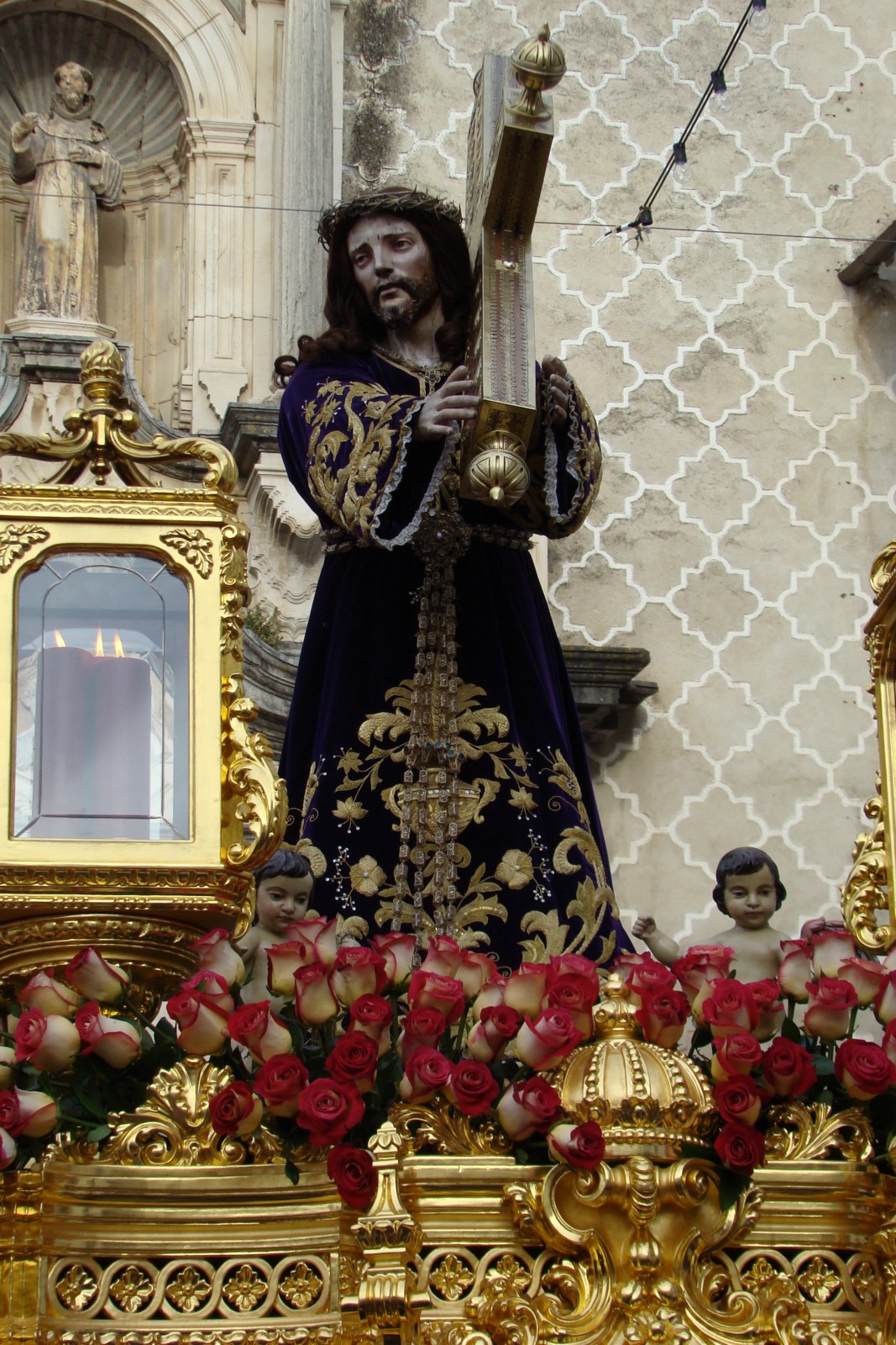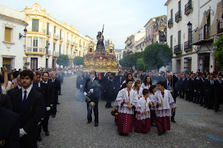 » En la tarde del último domingo de Mayo, la imagen de Nº Padre Jesús Nazareno de Priego de Córdoba, sale en procesión gloriosa desde la Iglesia de San Francisco. Esta procesión de carácter anual se celebra con motivos de la fiestas fundacionales votivas de la localidad. Todos los años «el rey de Priego» tal y como lo denominan los lugareños recorre las principales calles de la localidad rodeado de numeroso público . La bella imágen del Nazareno se atribuye al escultor Pablo de Rojas.»