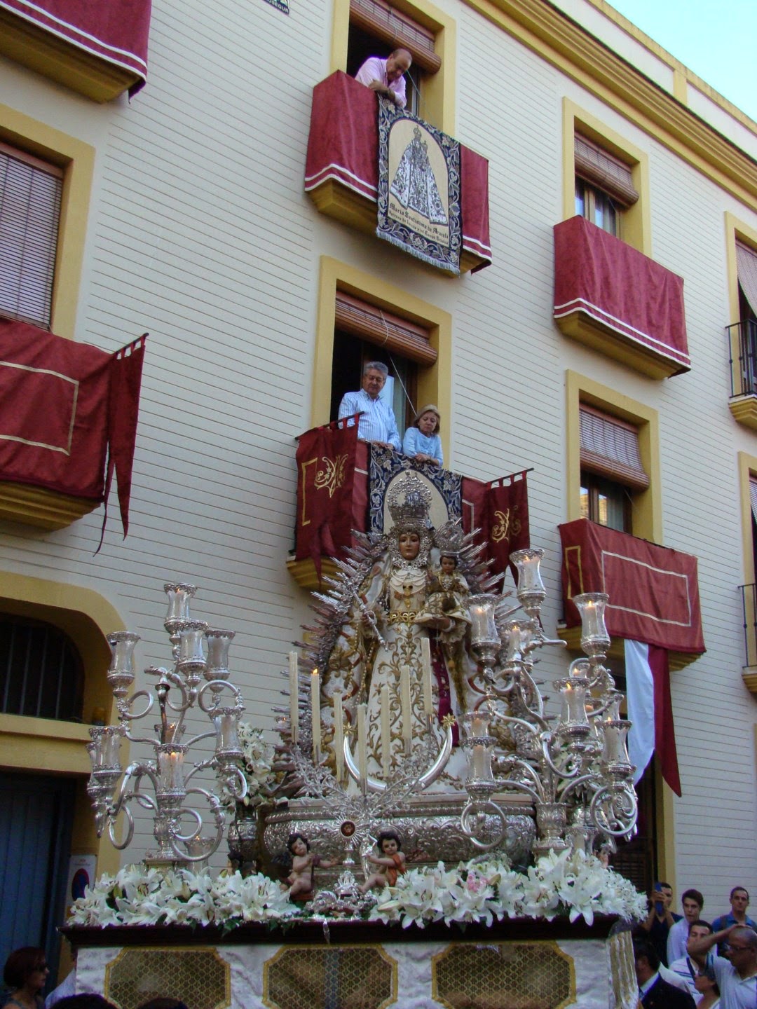 El pasado sábado 17 de mayo salió en procesión desde la iglesia parroquial de San Andrés, la imagen gloriosa de Nª Sª de Araceli, obra del escultor Antonio Castillo Lastrucci. A partir de este año es intención de la Hermandad hacerlo de forma habitual en el mes de mayo, incorporándose al ciclo de las “glorias”. Para esta primera ocasión la virgen lucia un manto blanco cedido por la Hermandad de la Esperanza Macarena. El acompañamiento musical lo realizó la Banda de Nª Sª de la Victoria de la Hermandad de las Cigarreras.
