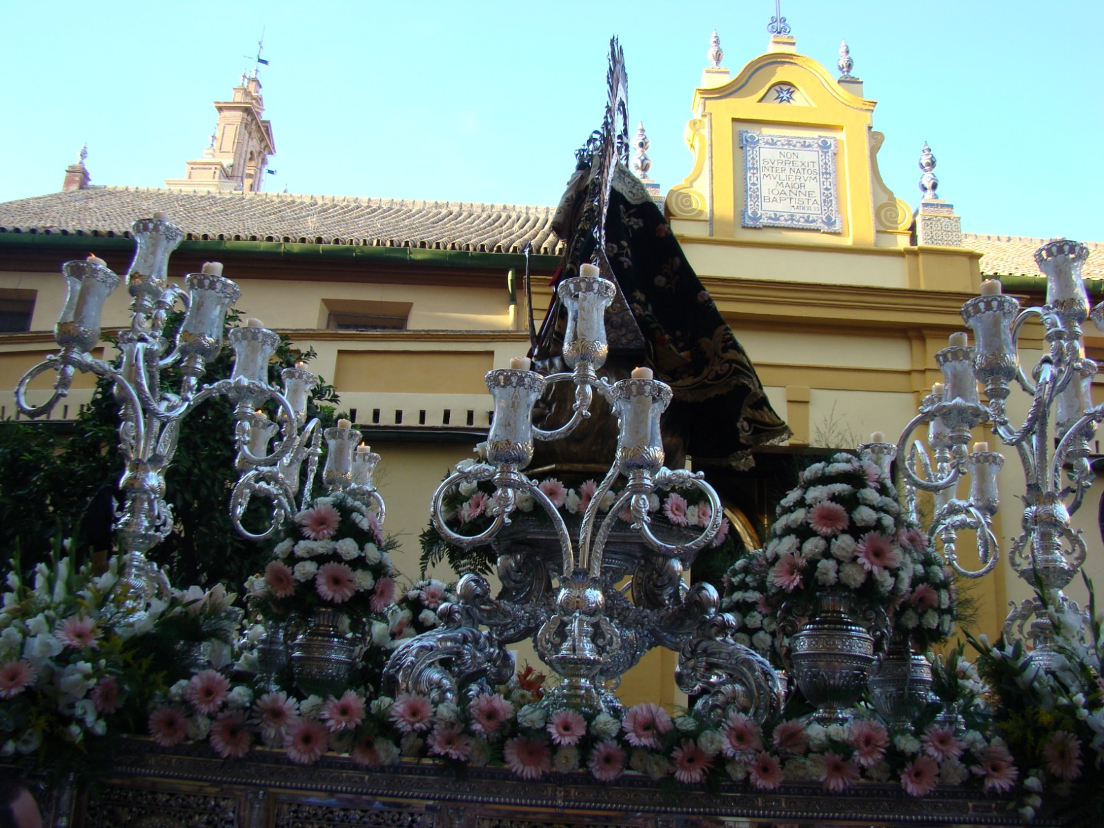 » La Real Cofradía Sevillana de Nª Sª de la Cabeza establecida canónicamente en la iglesia de San Juan de la Palma, realizó el pasado sábado 6 de octubre la anual salida procesional de su titular gloriosa. La réplica de la «morenita de Sierra Morena» recorrió las calles del barrio acompañada musicalmente por la Banda del Santo Cristo Varón de Dolores abriendo el cortejo y tras el paso la Banda de música de la Cruz Roja. La Virgen estrenaba un nuevo rostrillo bordado en oro, realizado por Antonio Jesús del Castillo.»